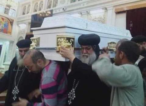 لفتة إنسانية.. أسقف المنيا الأنبا مكاريوس يحمل نعش سيدة لا أسرة لها
