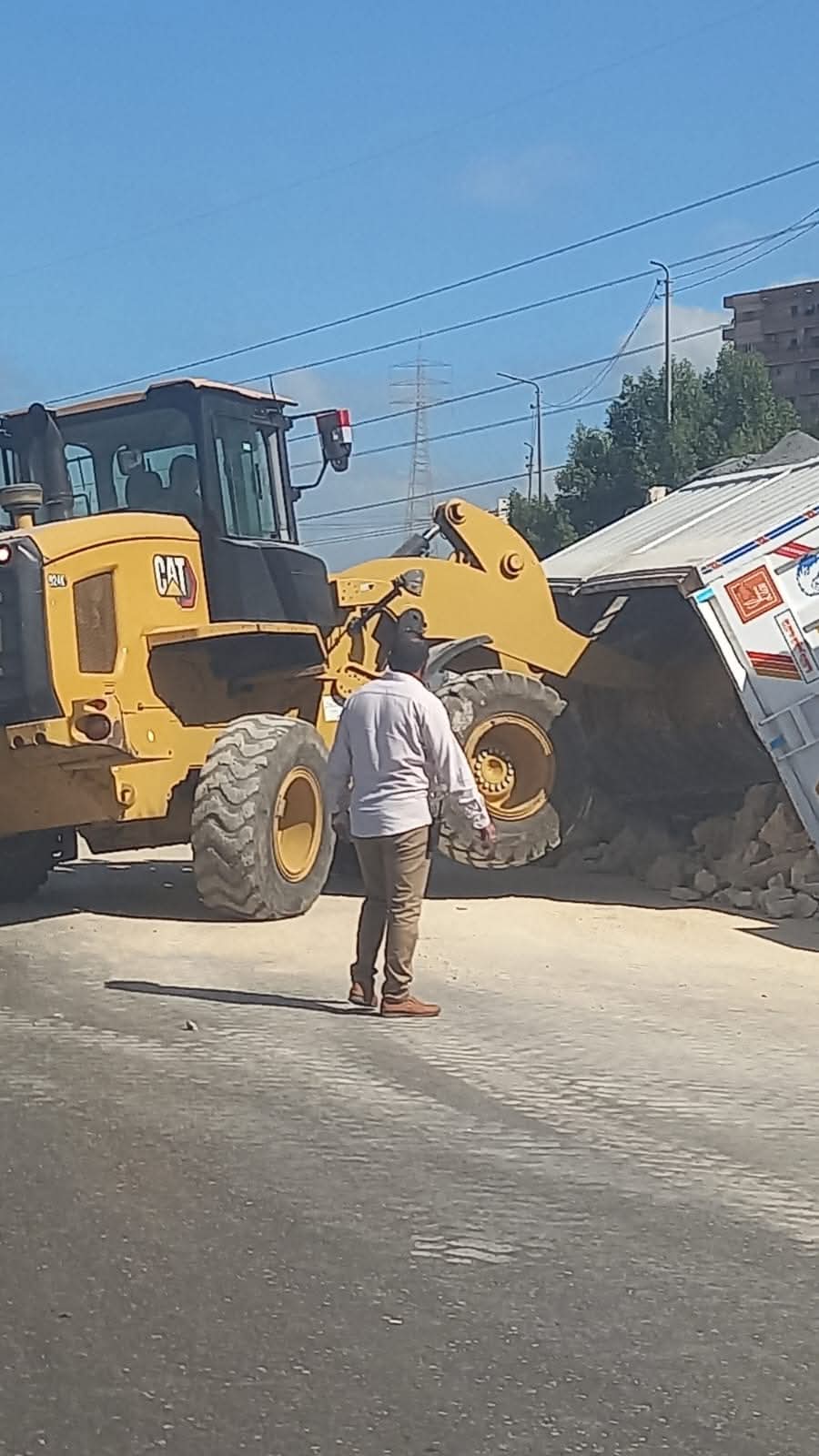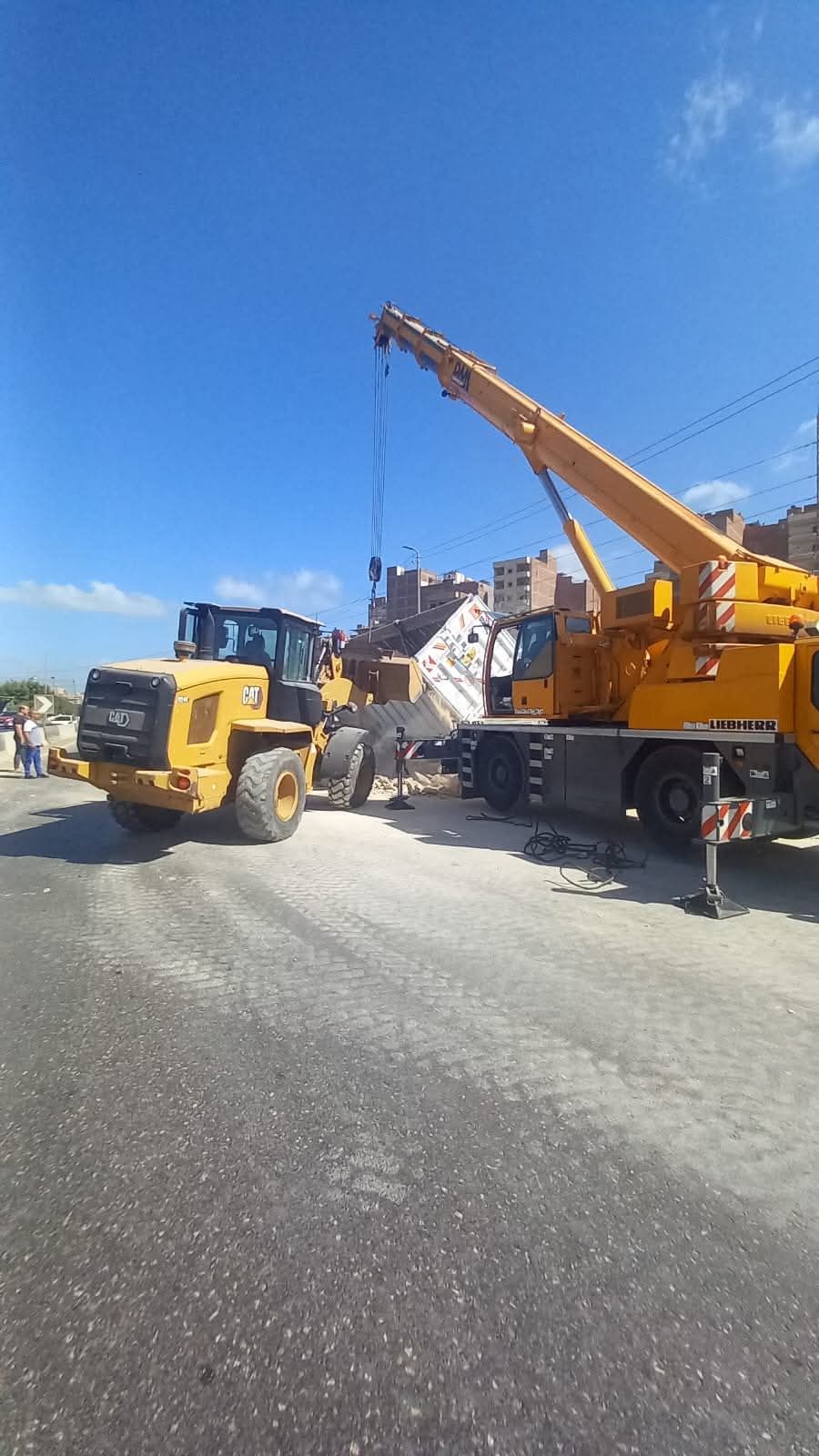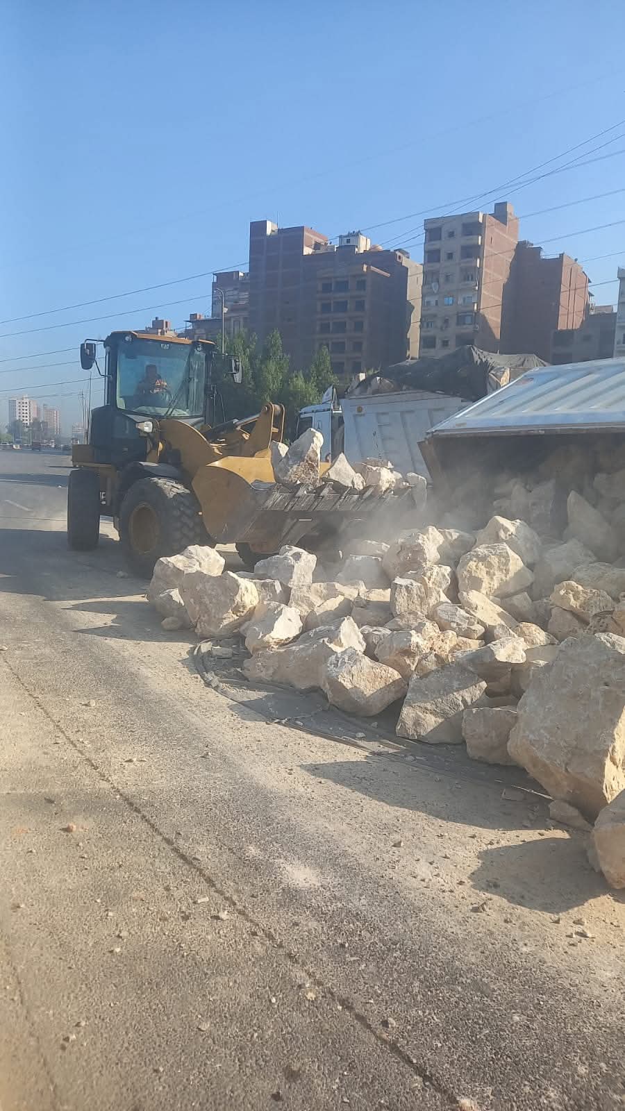 انقلاب تريلا محملة بالحجارة يتسبب في شلل مروري على الطريق الدائري بالمنصورة