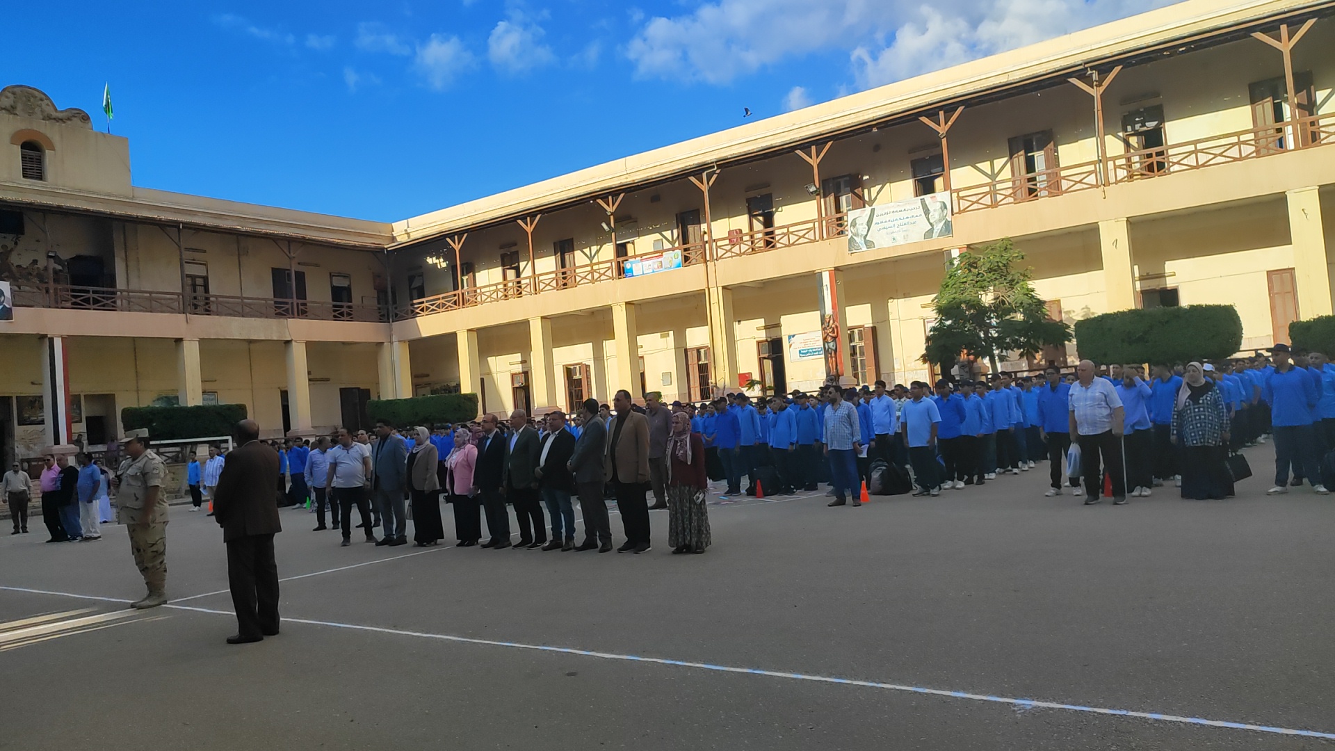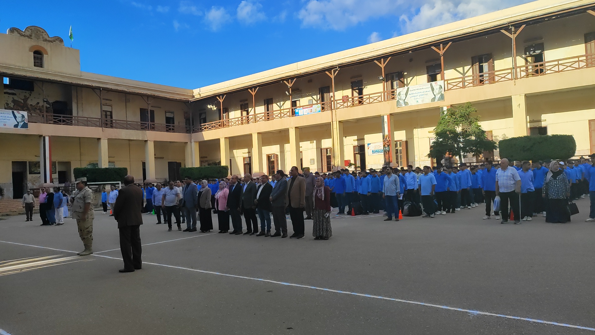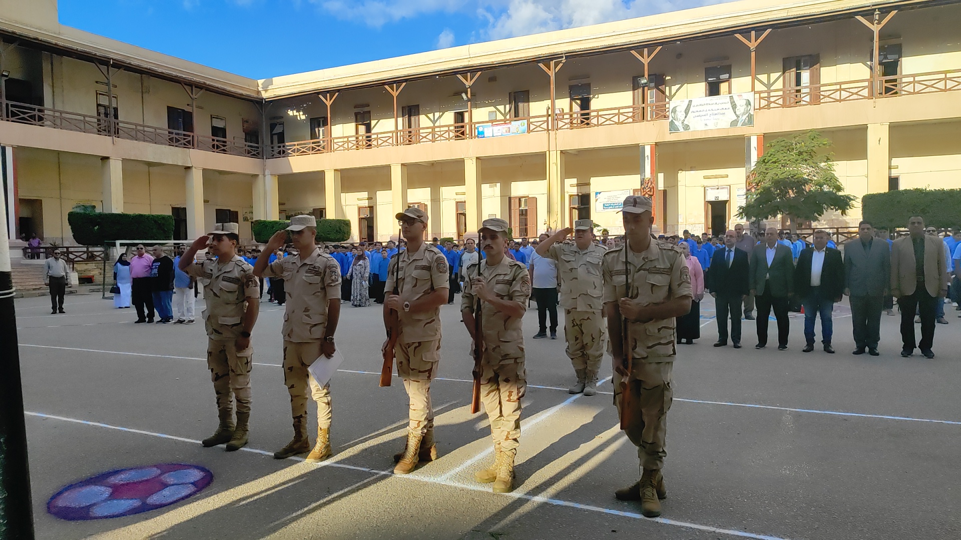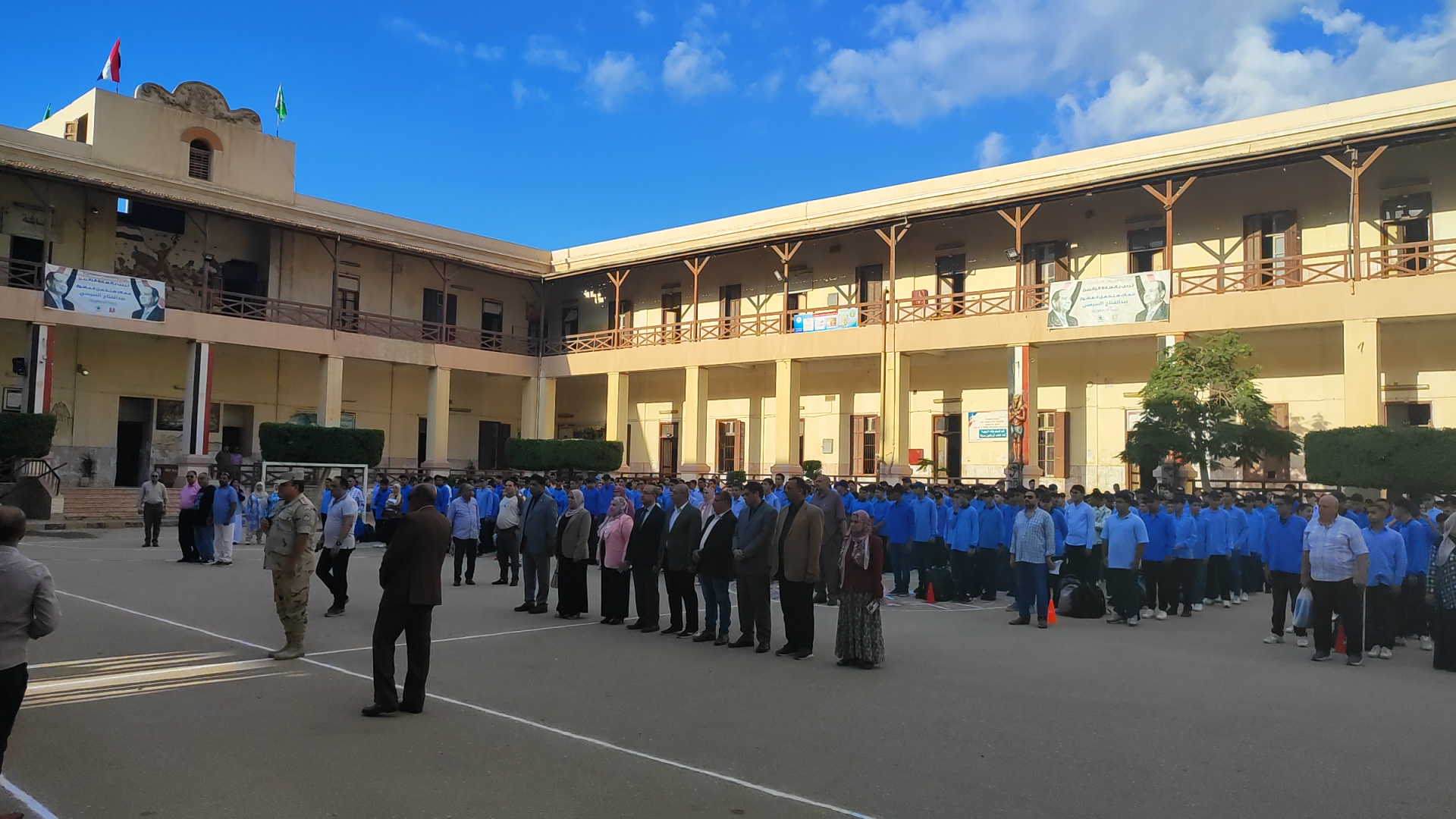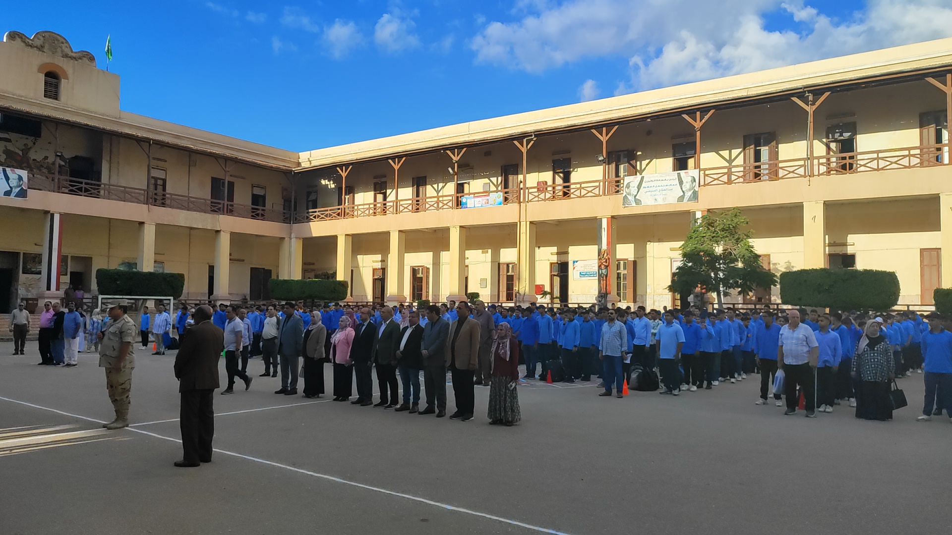 وحضر الدكتور "محمد صلاح" وكيل وزارة التربية والتعليم بالمنوفية، مراسم طابور الصباح بمدرسة الثانوية العسكرية بشبين الكوم، حيث شارك الطلاب تحية العلم، مؤكدا على أهمية غرس قيم الانتماء والالتزام والانضباط مع بداية العام الدراسي.