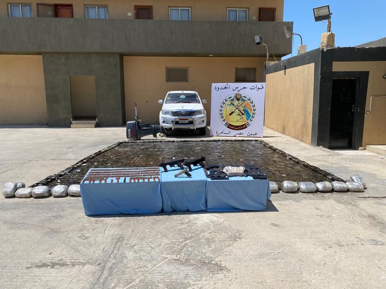 استمراراً لجهود القوات المسلحة فى تأمين الحدود البرية والساحلية للدولة المصرية للحفاظ على الأمن القومى المصرى قامت قوات حرس الحدود بتوجيه عدد من الضربات القاصمة ضد العناصر الإجرامية والخارجة عن القانون والمهربين على كافة الإتجاهات الإستراتيجية للدولة ، حيث أسفرت جهود قوات حرس الحدود خلال الفترة الماضية عن ضبط ( 147 ) قطعة سلاح و( 51 ) خزنة و( 2031 ) طلقة مختلفة الأعيرة ، كما تم ضبط ( 12,6 ) طن من المواد المخدرة و( 191900 ) قرص مخدر و( 118,5 ) فدان من الزراعات المخدرة .