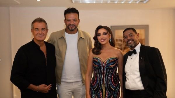 أيمن عباس وحمادة إسماعيل وهانى فرحات فى صورة جماعية احتفالا بعودة النجمة أنغام للغناء