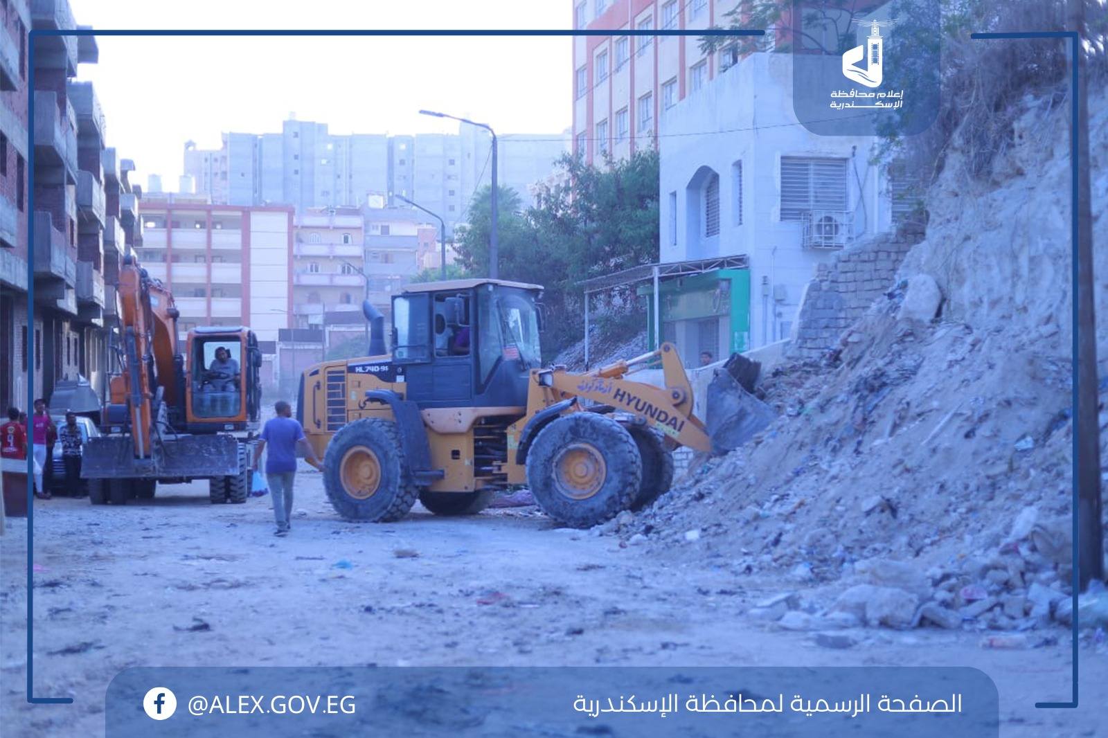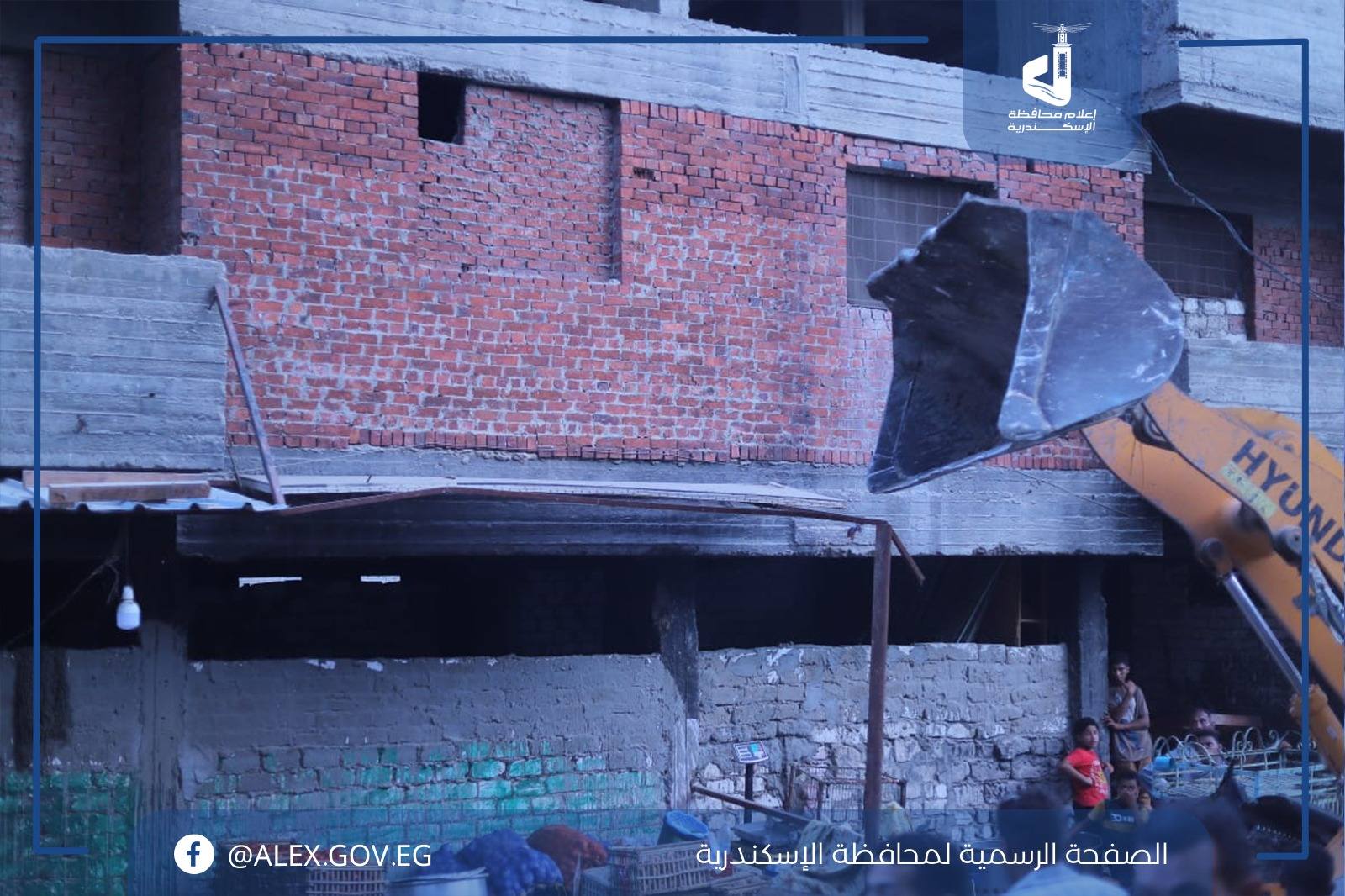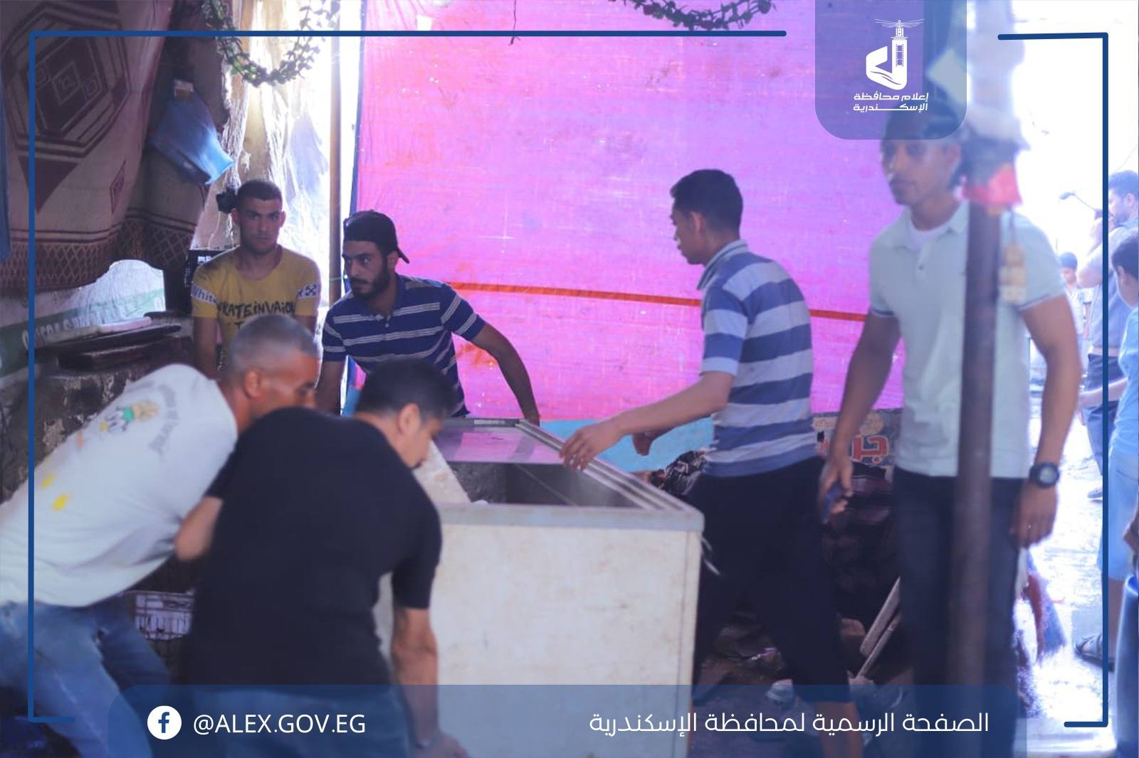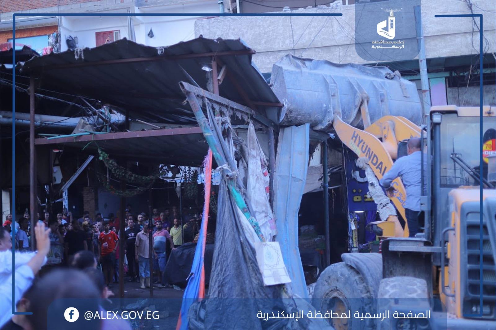 تنفيذًا لتوجيهات محافظ الإسكندرية.. حملة موسعة لازالة الإشغالات العشوائيةفى سوق الهانوفيل
