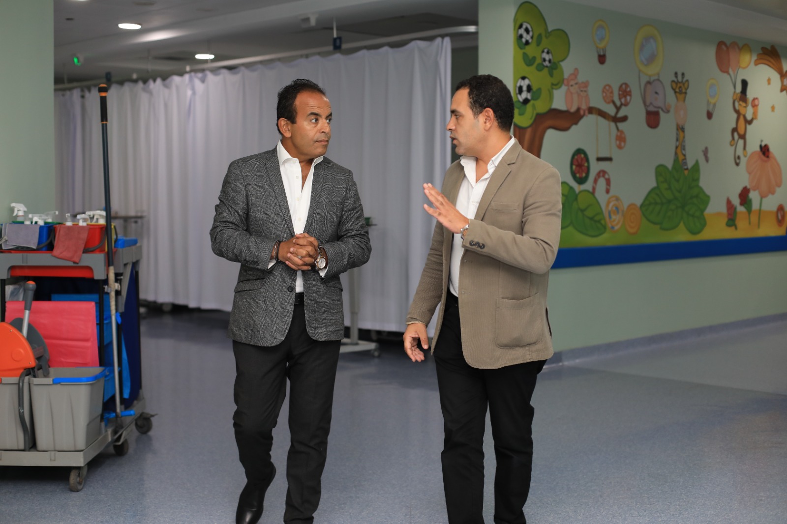 وأضاف: «مش قادر أوصف سعادتي بالزيارة، وبحجم الأجهزة الطبية ومستوي غرف العمليات، وحجم ومستوي غرف القسطرة، وطبعًا كل ده بيتقدم لأهلنا بالمجان، ولو احنا بنتكلم على فكرة برنامج «الجدعان»، فهو بيرصد قصص نجاح الجدعان في كل مكان بمصر، واحنا فاتنا كتير جدًا في برنامج «الجدعان»، إننا ما رصدناش حكاية مستشفى الناس، لأن هنا فعلا هما الجدعان اللي قدروا يعالجوا الناس، واحنا لو عالجنا البشر، البلد دي هتكون في حتة تانيه خالص، لأن أهم حاجة صحة البني آدم».