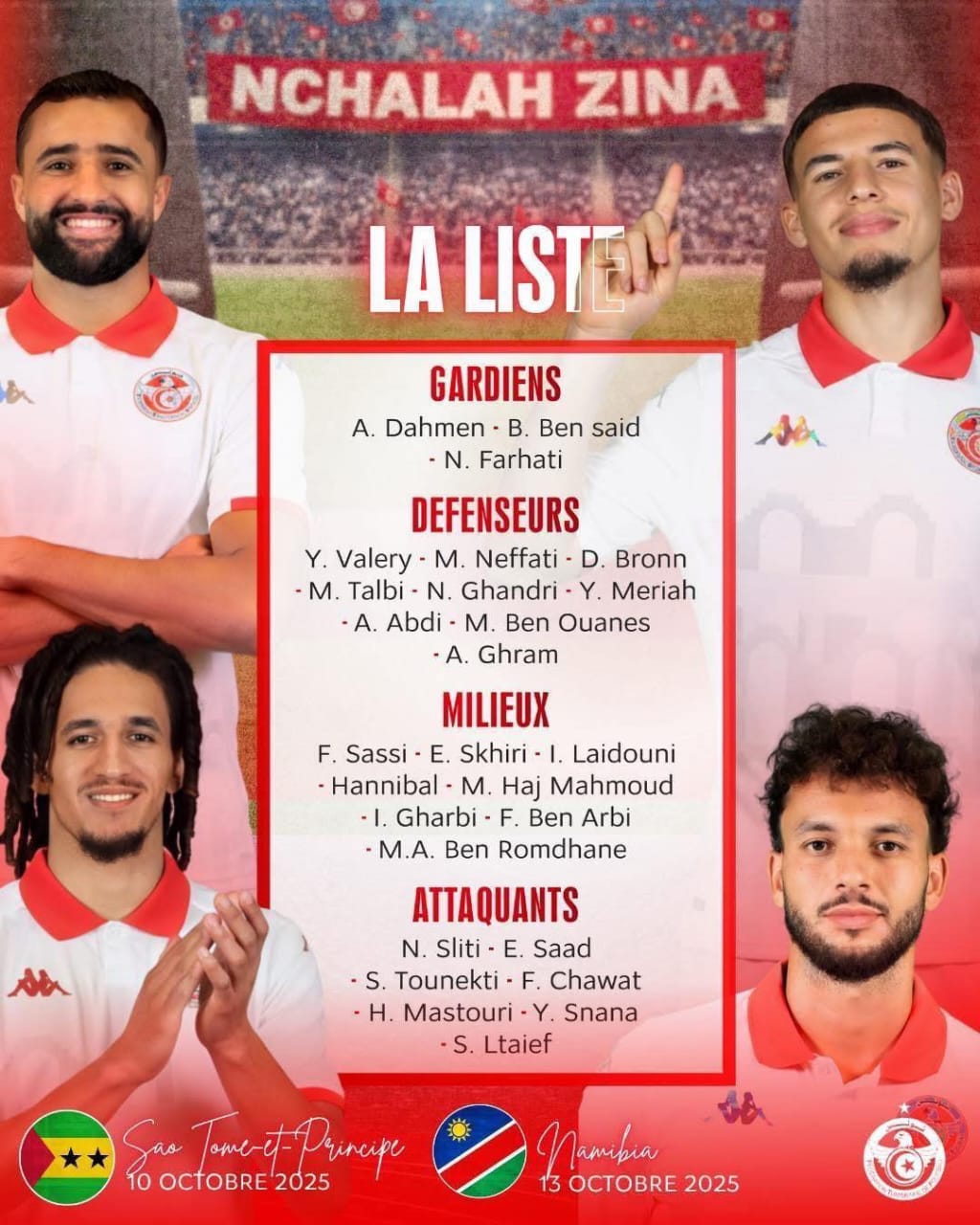 نجم الأهلي علي رأس قائمة منتخب تونس في تصفيات كأس العالم 2026