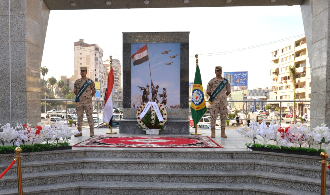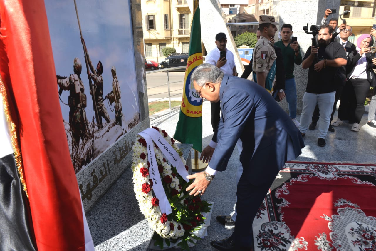 محافظ الدقهلية يضع إكليل الزهور على النصب التذكاري للشهداء احتفالًا بذكرى انتصارات أكتوبر