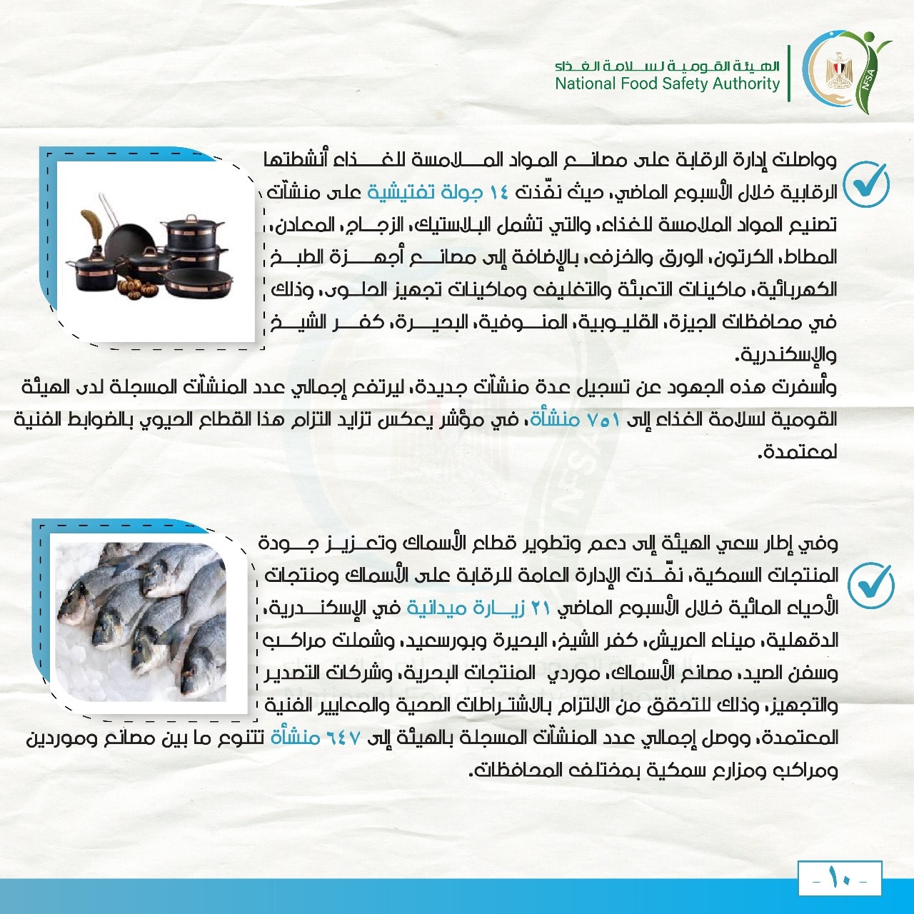 المركز الإعلامي للهيئة القومية لسلامة الغذاء يصدر تقريره الأسبوعي الـ 36 لعام 2025