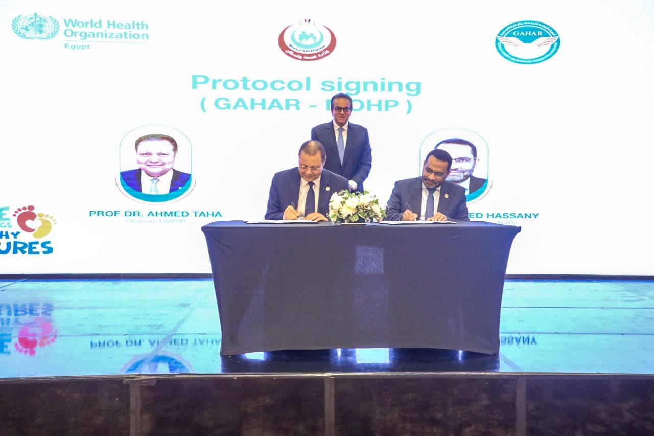 شهدت الاحتفالية توقيع بروتوكول تعاون بين الهيئة العامة للاعتماد والرقابة الصحية ووزارة الصحة والسكان (ممثلة في الإدارة العامة لسلامة المرضى)، لتعزيز الشراكة في بناء القدرات، وتطوير الأدلة الإرشادية الوطنية، وتوحيد تطبيق معايير الجودة والسلامة داخل المنشآت الصحية.