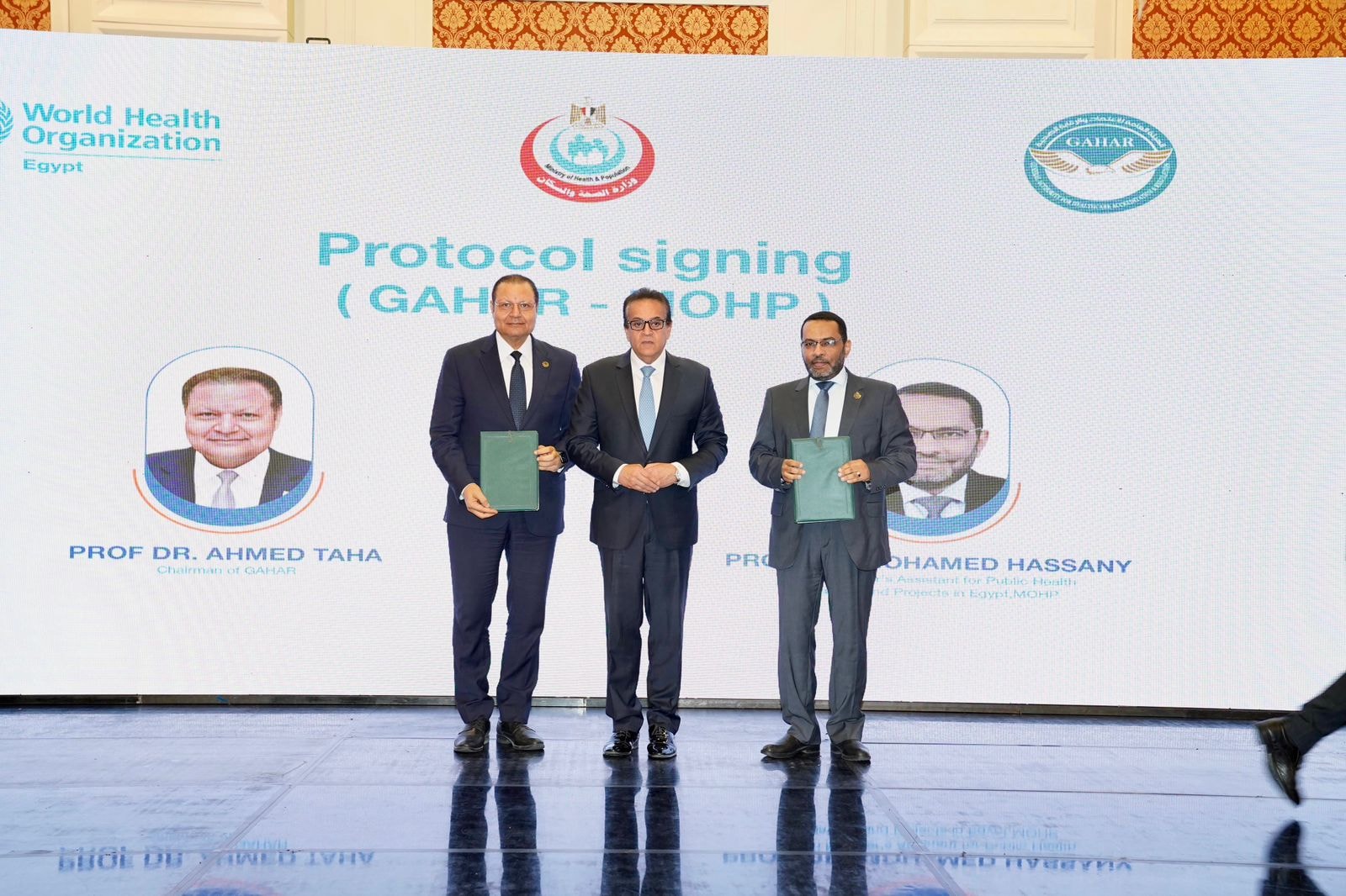 قام بتوقيع البروتوكول عن الهيئة الدكتور أحمد طه، رئيس الهيئة، وعن الوزارة الدكتور محمد حساني، مساعد وزير الصحة لشؤون مشروعات ومبادرات الصحة العامة.