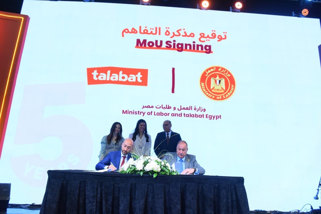 كما شهد الوزير جبران توقيع مذكرة تفاهم مشتركة بين "الوزارة "، و"شركة طلبات "، قام بالتوقيع عليها السيد خالد عبدالله،مستشار وزير العمل للسلامة والصحة المهنية ، ومحمد محسن،مدير الخدمات اللوجستية بشركة طلبات ، للتعاون في تقديم الحماية والدعم لعمال التوصيل بالشركة، وتوفير" مهمات وقاية" لهم .