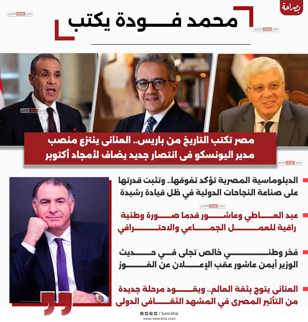 محمد فودة يكتب: مصر تكتب التاريخ من باريس.. العنانى ينتزع منصب مدير اليونسكو فى انتصار جديد يضاف لأمجاد أكتوبر