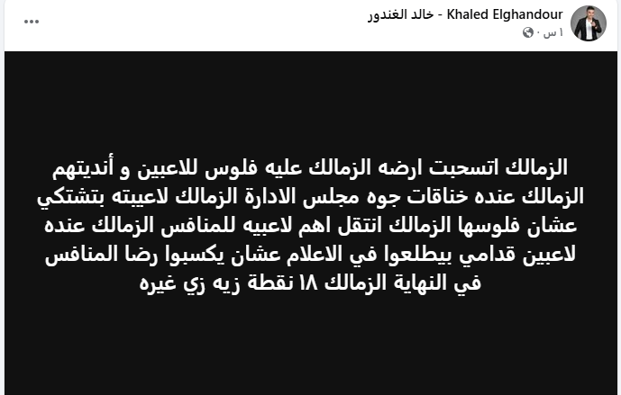 "الزمالك انسحب من أرضه، والزمالك عليه فلوس للاعبين وأنديتهم، والزمالك عنده خناقات داخل مجلس الإدارة، واللاعبين بيشتكوا بسبب تأخر مستحقاتهم، وأهم نجوم الفريق انتقلوا للمنافس".