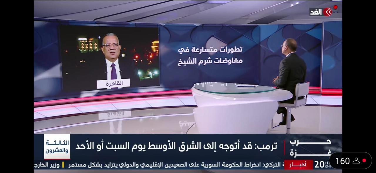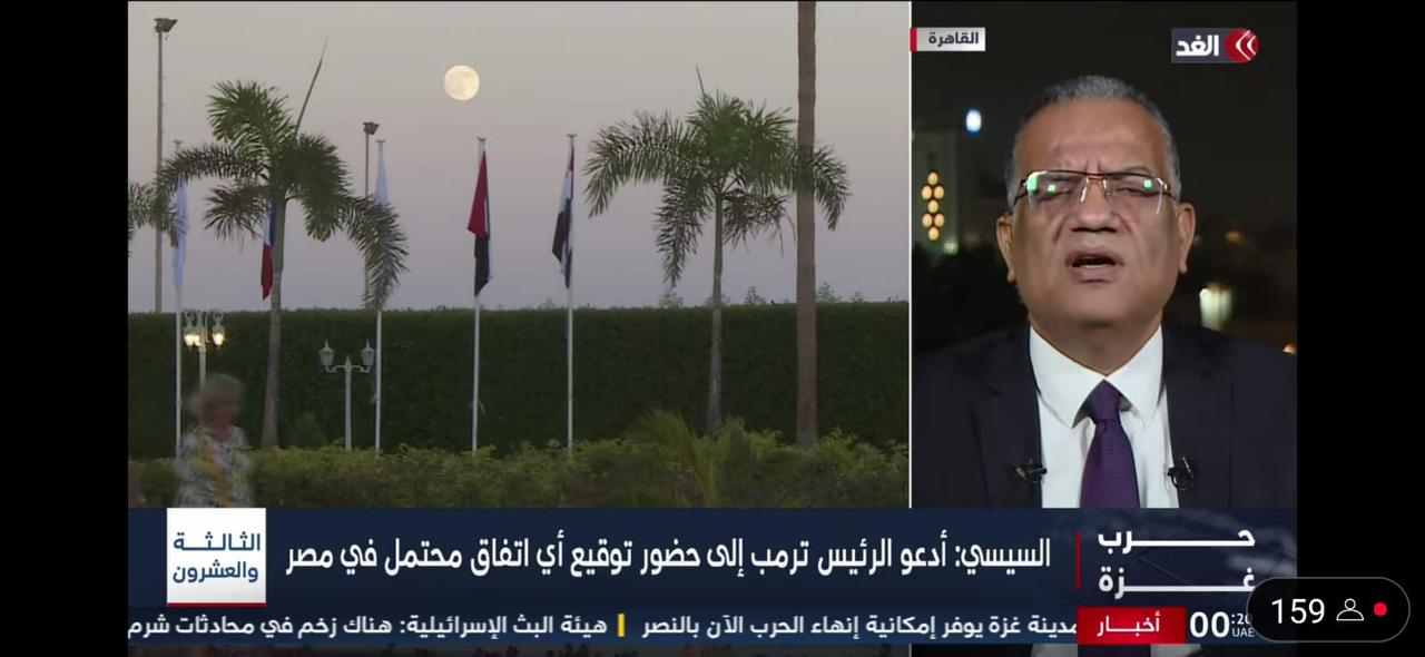 وأضاف «مسلم» في لقاء على قناة «الغد»: «تسير مصر على خطين متوازيين لإنهاء هذا الأمر، الأول يتمثل في التوافق بين الإسرائيليين ووفد حركة حماس، أما الخط الثاني فهو محاولة تقريب وجهات النظر بين حماس وباقي الفصائل الفلسطينية والسلطة الفلسطينية، ونحن نرى جهدا مصريا كبيرا في هذه الأزمة، وتابعنا دعوة الرئيس عبدالفتاح السيسي، للرئيس الأمريكي دونالد ترامب لزيارة مصر، وحضور الاتفاق إذا ما تم توقيعه، وبالتالي أتوقع إعلان إنهاء الاتفاق بين حماس وإسرائيل على خطة ترامب خلال ساعات قليلة».
