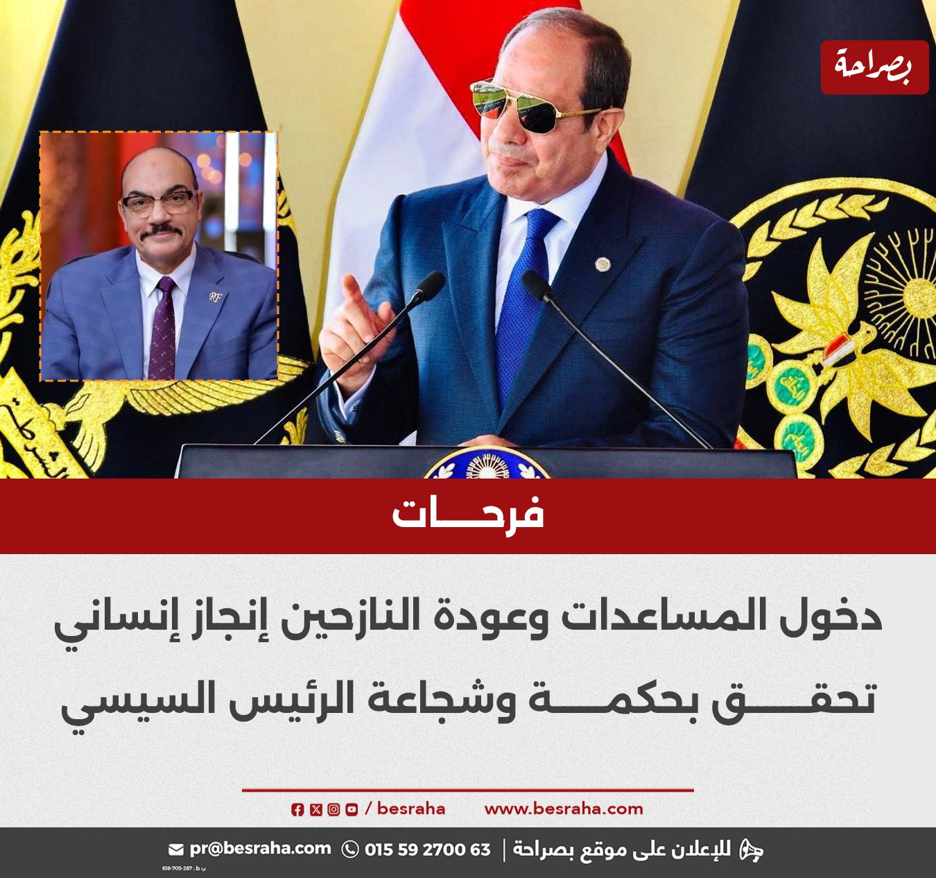 فرحات: دخول المساعدات وعودة النازحين إنجاز إنساني تحقق بحكمة وشجاعة الرئيس السيسي