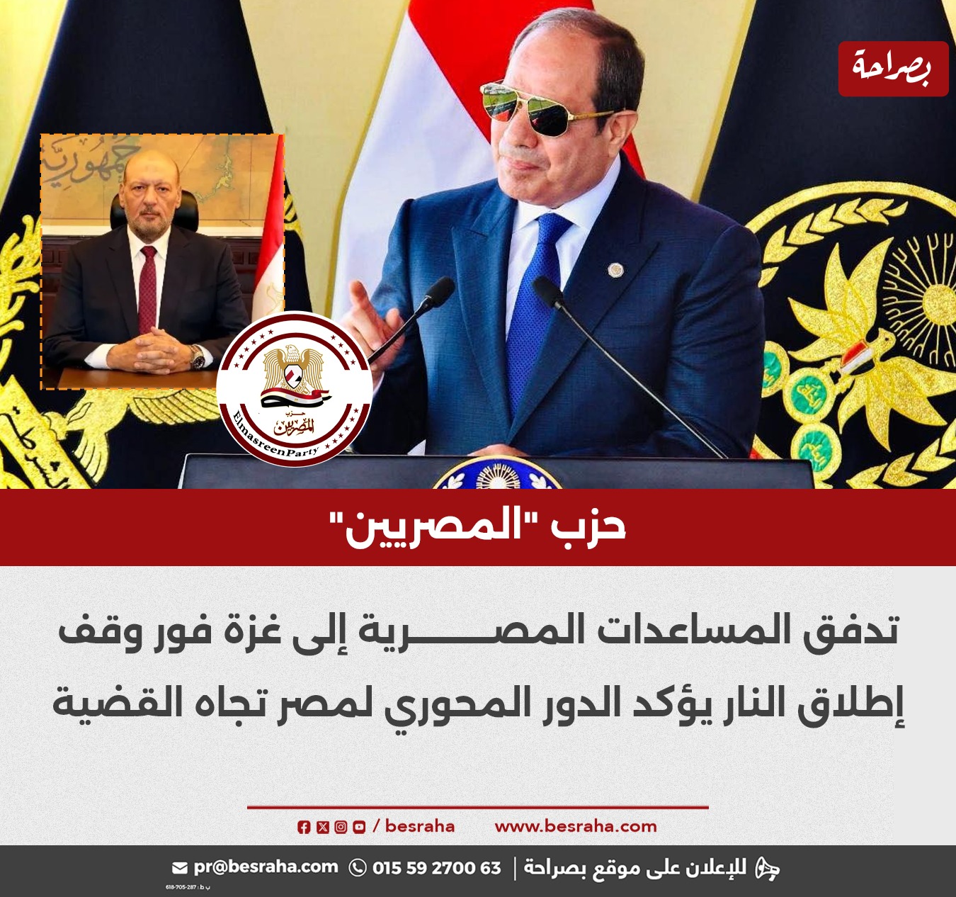 حزب "المصريين": تدفق المساعدات المصرية إلى غزة .. بفضل القيادة الحكيمة للرئيس السيسي