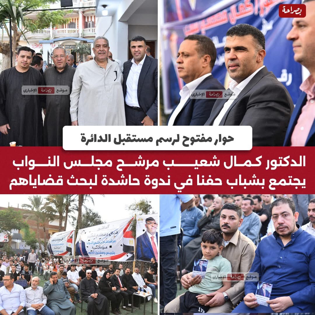 شهدت قرية حفنا أمس ندوة شبابية حاشدة نظمها الدكتور كمال مصطفى شعيب، المرشح لانتخابات مجلس النواب عن دائرة بلبيس ومشتول السوق، حيث حرص على فتح حوار مباشر مع شباب الدائرة للاستماع إلى آرائهم وأفكارهم ورؤيتهم لمستقبل منطقتهم.