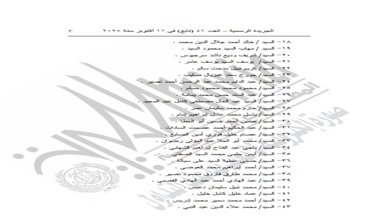 وجاء في المادة الأولى من القرار، يعين عضوًا بمجلس الشيوخ كل من: