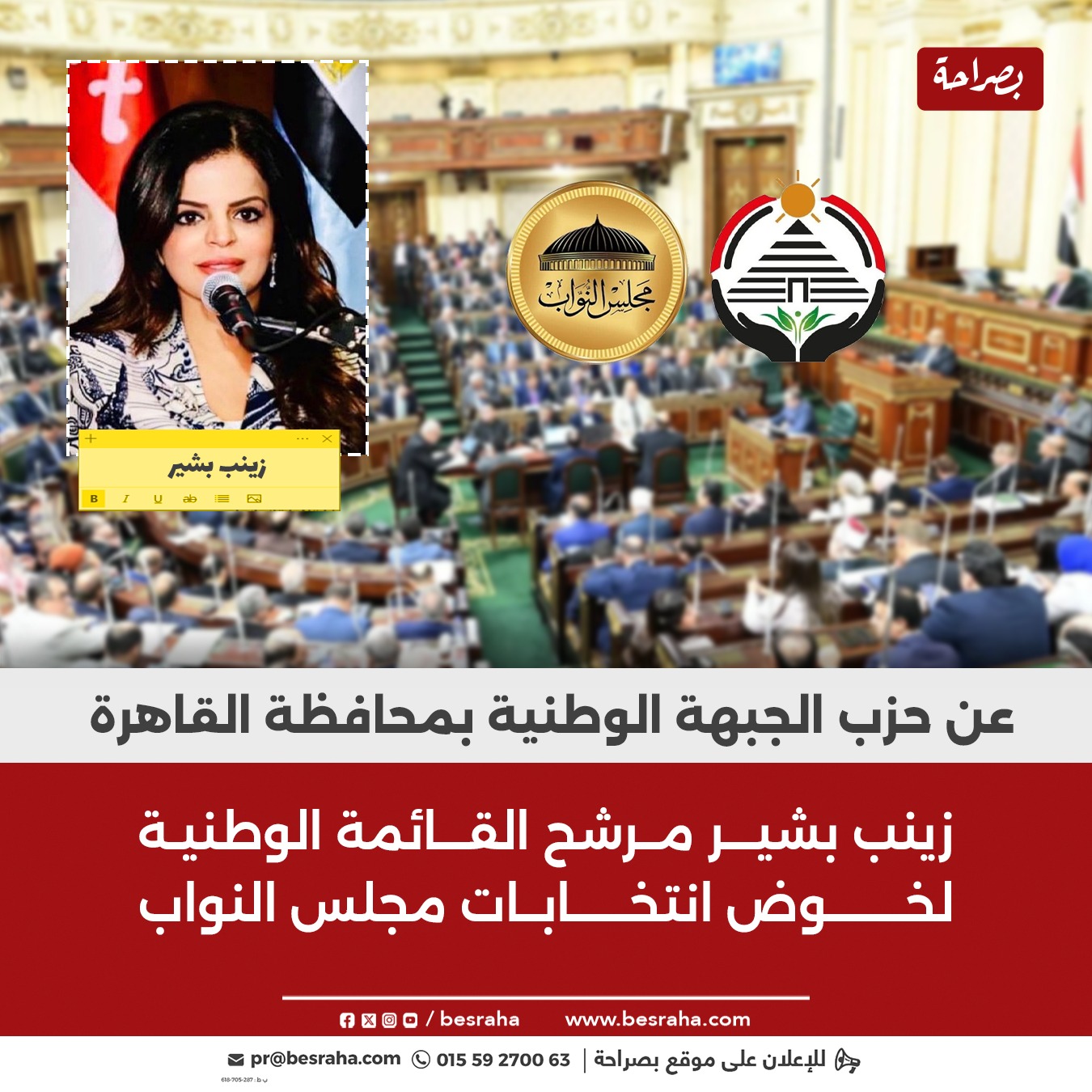 زينب بشير تخوض إنتخابات النواب عن محافظة القاهرة ضمن القائمة الوطنية