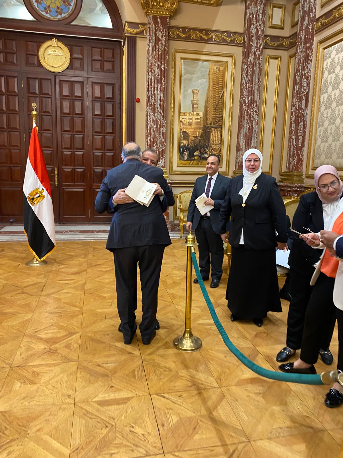 ونظمت الأمانة العامة بمجلس الشيوخ الإجراءات الخاصة باستقبال الاعضاء المعينين وعددهم 100 عضو لاستكمال بيانات العضوية ،واستخراج كارنيهات العضوية وتحقيق البصمة الإلكترونية،واستلام الحقيبة البرلمانية الخاصة بكل عضو.