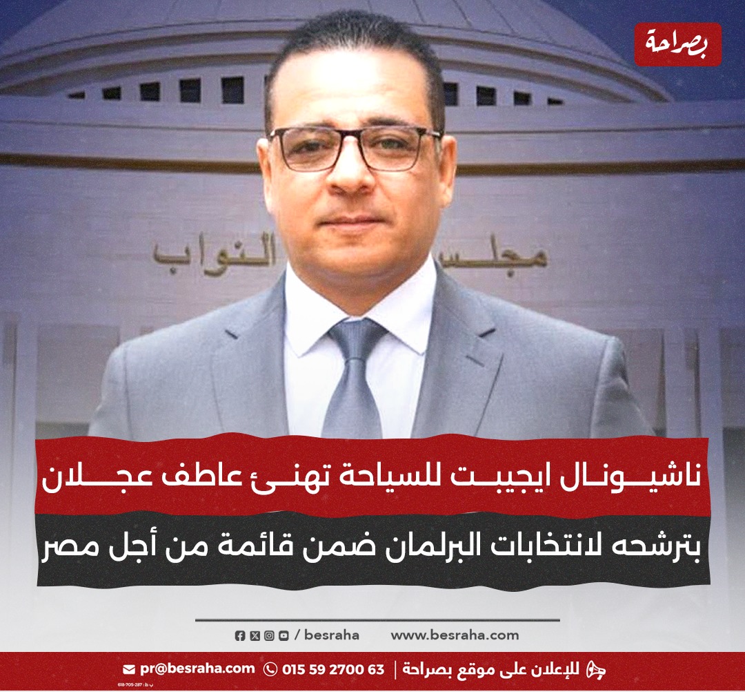 ناشيونال ايجيبت للسياحة تهنئ عاطف عجلان بترشحه لانتخابات البرلمان ضمن قائمة من أجل مصر