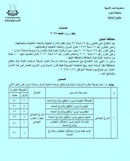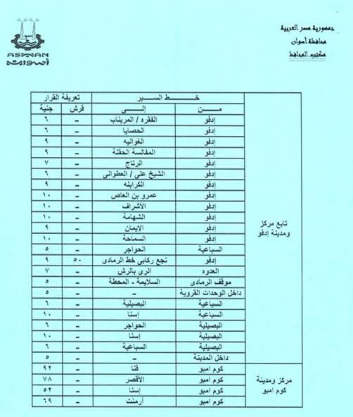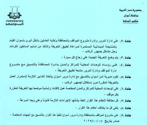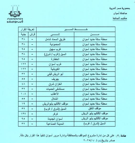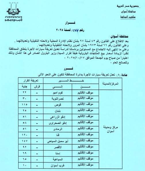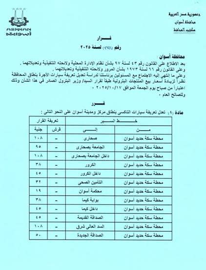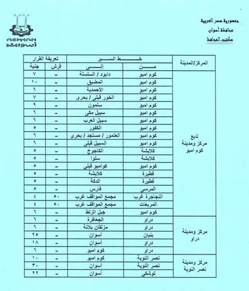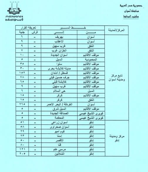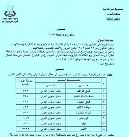 بعد زيادة أسعار الوقود .. محافظ أسوان يقرر تعديل تعريفة الأجرة للمواصلات