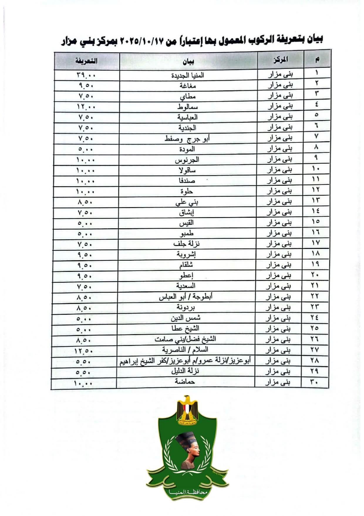 محافظ المنيا يعتمد تعريفة الركوب الجديدة عقب تحريك أسعار الوقود