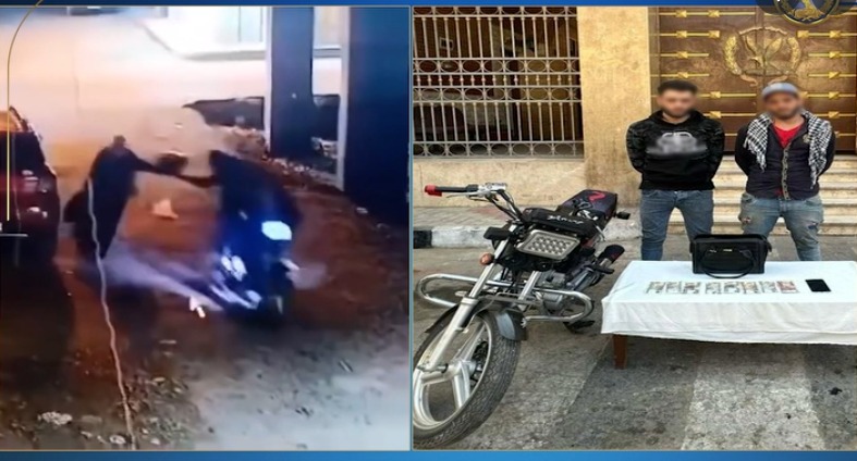 فى إطار كشف ملابسات مقطع فيديو تم تداوله بمواقع التواصل الإجتماعى تضمن قيام شخصين يستقلان دراجة نارية بسرقة حقيبة من إحدى السيدات حال سيرها بأحد الطرق بالغربية .