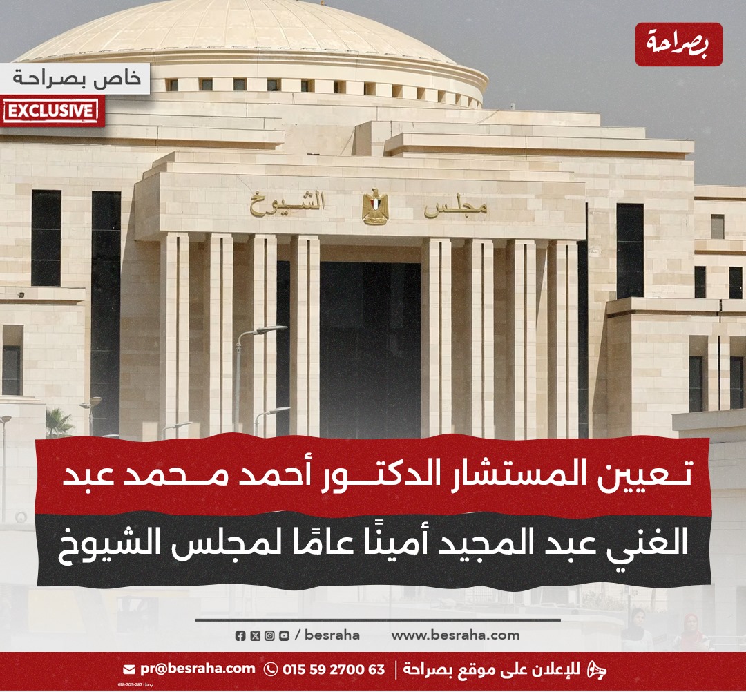 تأكيدا لموقع بصراحة.. ندب المستشار أحمد محمد عبد الغنى أمينا عاما لمجلس الشيوخ
