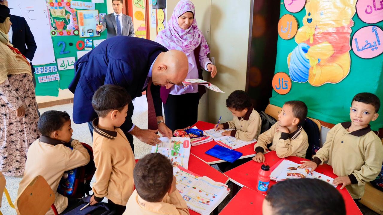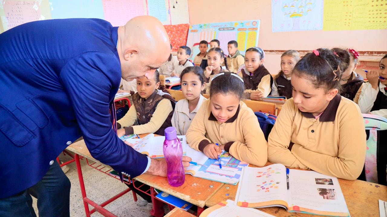 كما تفقد الوزير فصول المرحلتين الابتدائية والإعدادية، واطلع على دفاتر التحضير وسجلات المعلمين وكراسات تقييمات الطلاب، مؤكدًا أهمية متابعة مستوى التحصيل الدراسي أولًا بأول، والاهتمام بتنمية مهارات القراءة والكتابة لدى التلاميذ، فضلًا عن ترسيخ قيم الانضباط والالتزام داخل المدرسة.