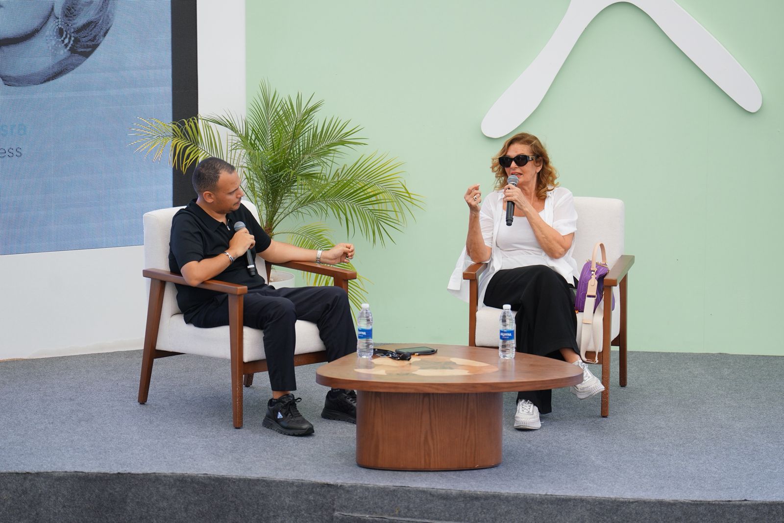 بدأت يسرا اللقاء بتحية عفوية من القلب قائلة: "بحبكم أوي وبكبر بيكم"، ليضيف بعدها محمد عمر بابتسامة صادقة أنه لم يشعر بالشرف والفخر الكبير في أي لحظة مثل تلك التي جمعته بيسرا. وأوضح أن مهمة الاحتفال بها لم تكن سهلة، قائلاً إنه منذ ستة أشهر في رمضان، كان في بيتها وقال لها: "انتي عارفة إنك كمّلتِ خمسين سنة؟"، فأجابته مازحة: "يعمّر بيتك!"، وكانت تظن أنه يقصد عمرها، لا خمسين عامًا من الفن، لتعقبه يسرا بالشكر على مبادرته، وبيّنت أن عملية التحضير للمعرض استغرقت وقت كبير من البحث في نحو ستين حقيبة عن فساتين أيقونية إلى رؤية محطات حياتها كلها مجتمعة. كما عبّرت عن فخرها بخمسين عامًا من الفن واعترافها بأن حب الجمهور كان الدافع الأهم.
