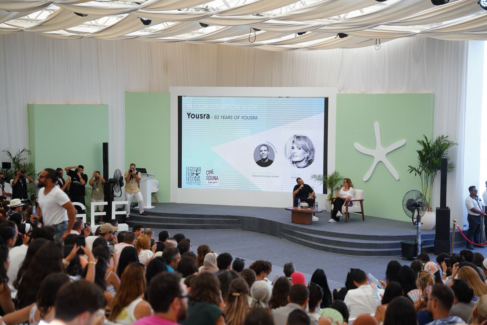 في جلسة حوارية بعنوان "50 سنة يسرا"، أدارها محمد عمر، مدير الشراكات العالمية في شركة "ميتا"، احتفى جمهور مهرجان الجونة في دورته الثامنة بمسيرة الفنانة الكبيرة يسرا، التي امتدت لنصف قرن من الإبداع والعطاء الفني، بحضور الناقد طارق الشناوي، هالة صدقي، أحمد مالك، أشرف عبد الباقي، هاني رمزي، عمرو جمال، حسن أبو الروس، ليلى علوي، إلهام شاهين، و المخرج هاني خليفة.