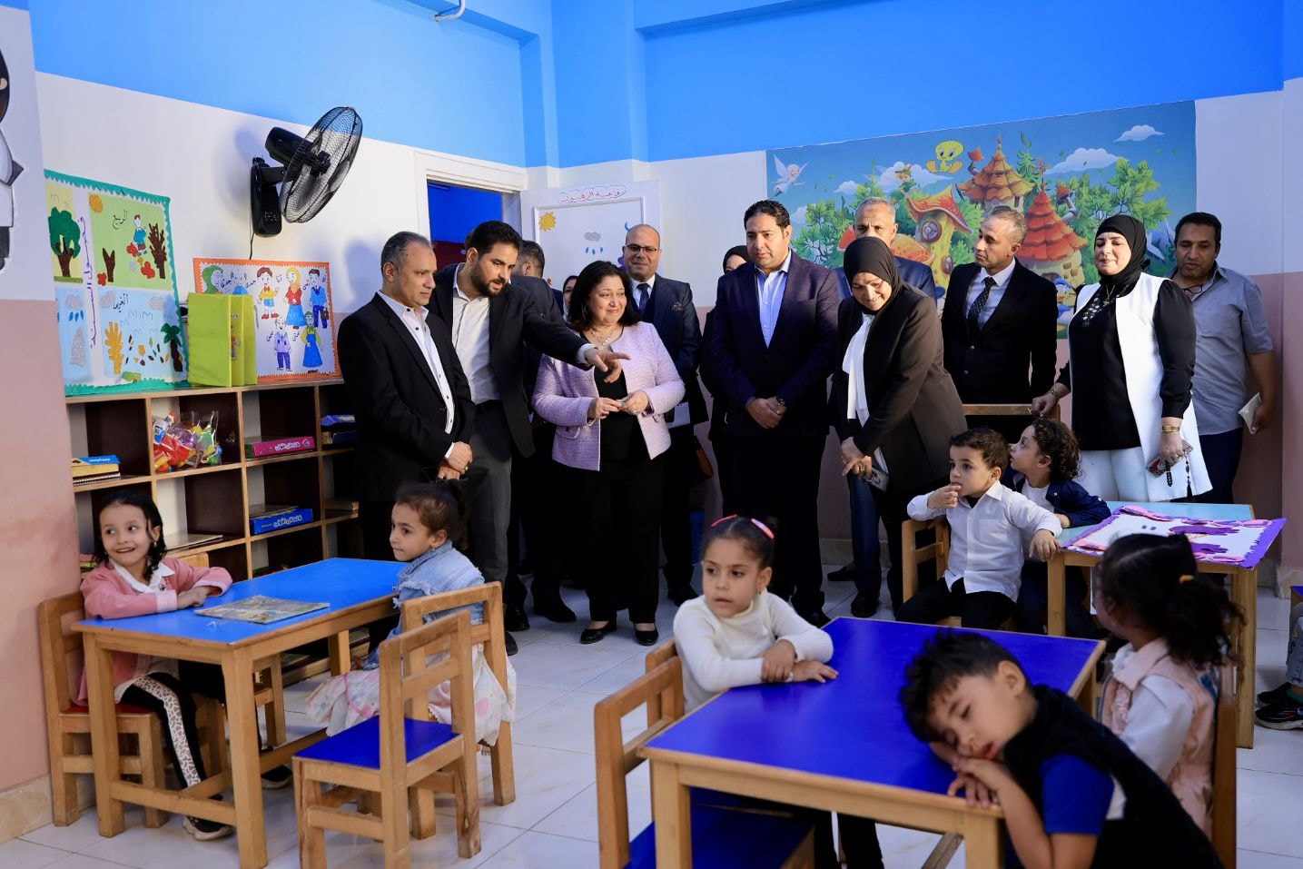 هذا وتضمنت الجولة الميدانية افتتاح المهندسة مرجريت صاروفيم نائبة وزيرة التضامن الاجتماعي يرافقها الأستاذ بلال حبش، نائب محافظ بني سويف والحضور اعمال التطوير لحضانة السلام بالدوية مركز بنى سويف التابعة لجمعية تنمية المجتمع المحلى والمقامة على مساحة 400 متر و تستوعب نحو 80 طفلا وطفلة من سن عامين الى 4اعوام ، حيث أطلعت على الأنشطة والخدمات التعليمية المتنوعة التي تقدم للاطفال.