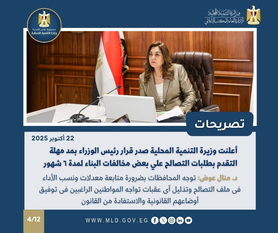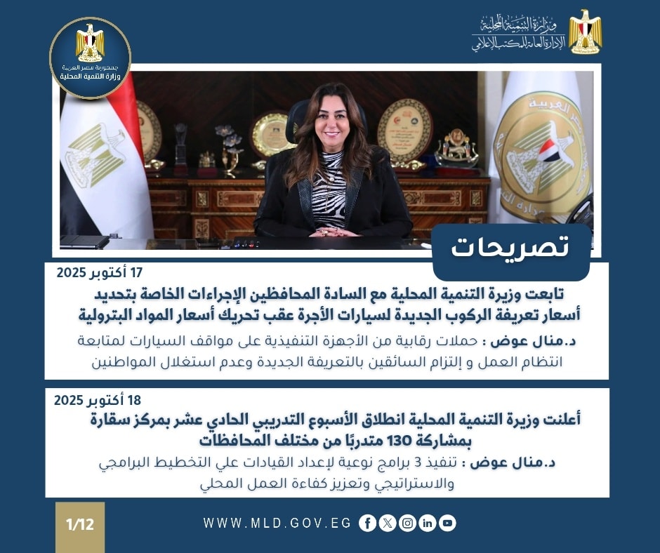 نشرة الحصاد الأسبوعي لرصد أنشطة وزارة التنمية المحلية خلال (17 : 23 أكتوبر 2025)