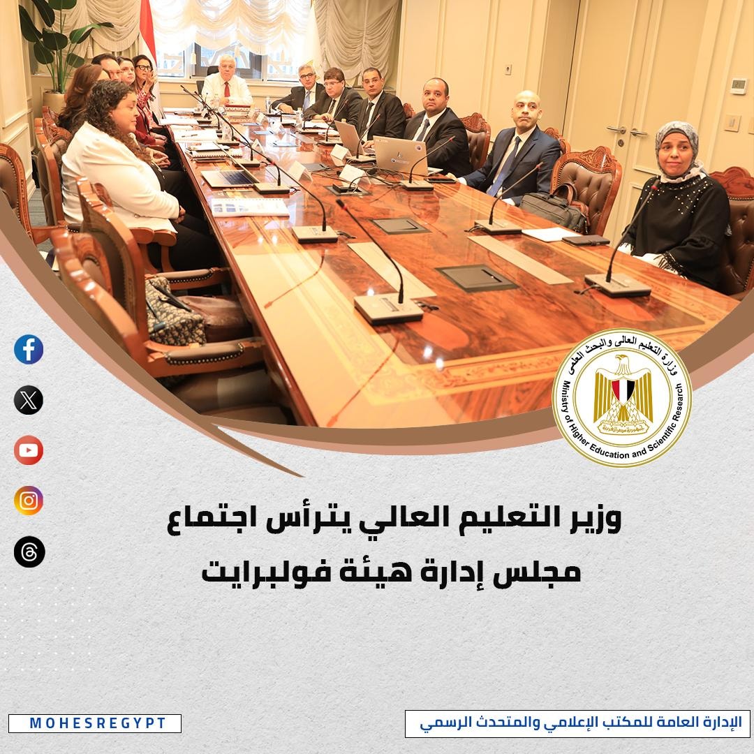 ترأّس الدكتور أيمن عاشور وزير التعليم العالي والبحث العلمي، اجتماع مجلس إدارة هيئة فولبرايت، وتناول الاجتماع البرامج التي تنفذها الهيئة لاستضافة الخبراء والأساتذة الأمريكيين بالجامعات والوزارات المصرية في مجالات الأحياء المائية، وهندسة الاتصالات اللاسلكية، وإدارة الأعمال، والطب، والصحة العامة، والفنون، وصناعة السينما، ودراسات الإعاقة، إلى جانب نشاط الهيئة مع رابطة خريجي فولبرايت في محافظات أسيوط والمنصورة وبورسعيد والإسكندرية.