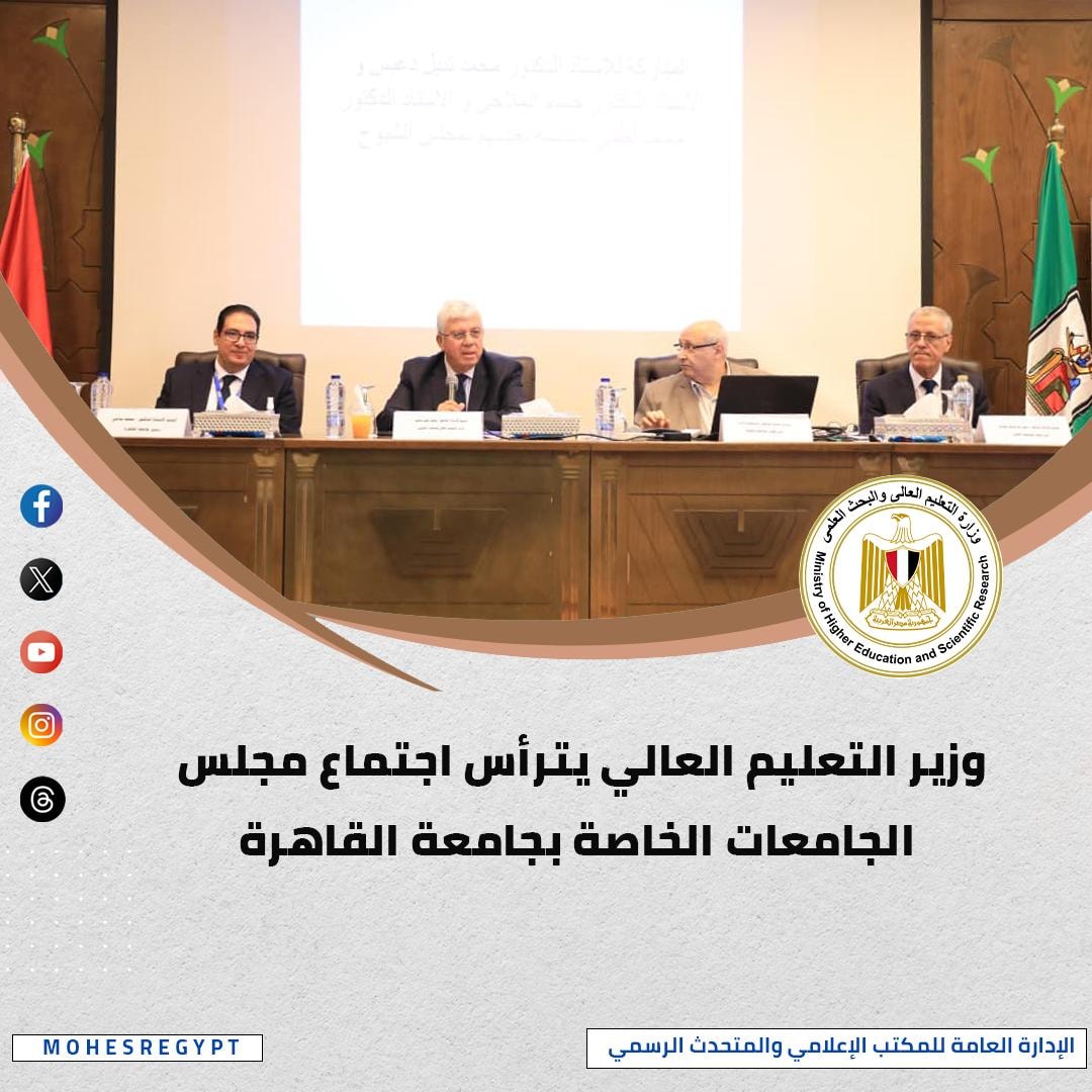 عقد مجلس الجامعات الخاصة اجتماعه الدوري، برئاسة الدكتور أيمن عاشور وزير التعليم العالي والبحث العلمي، وخلال الاجتماع استعرض المجلس تقريرًا حول إجمالي عدد المنح التي قدمتها الجامعات الخاصة خلال العام الدراسي 2025/2026، حيث بلغ إجمالي عدد الطلاب الذين حصلوا على منح كُلية وجزئية من الجامعات نحو 26,609 للعام الدراسي الجاري، كما وافق المجلس على إنشاء كلية الطب بجامعة بدر بأسيوط.