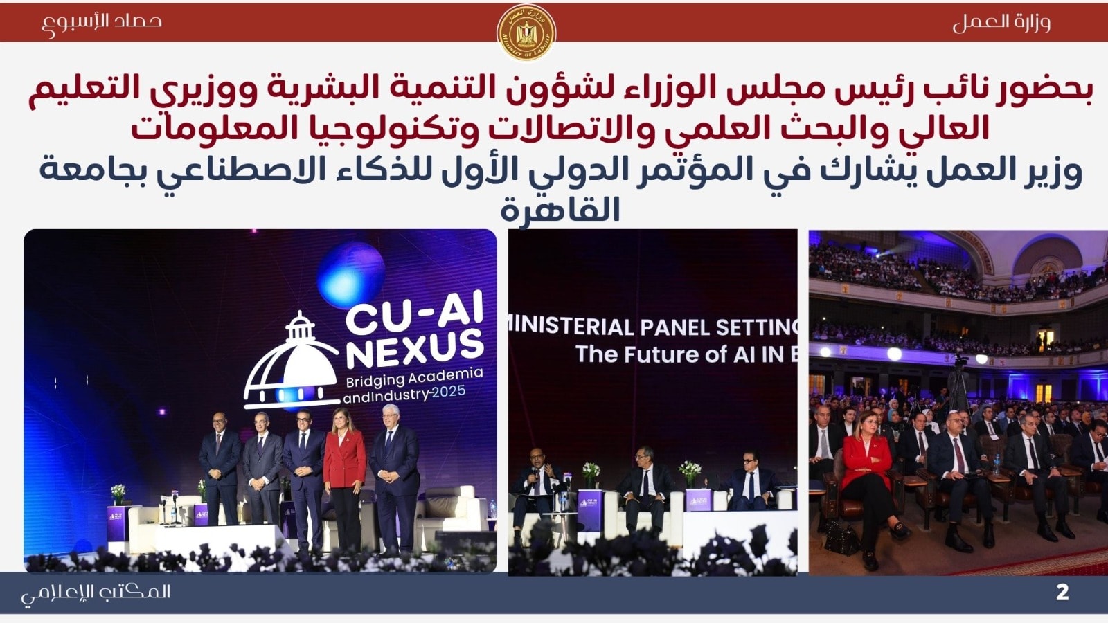 وزير العمل يشارك في المؤتمر الدولي الأول للذكاء الاصطناعي بجامعة القاهرة