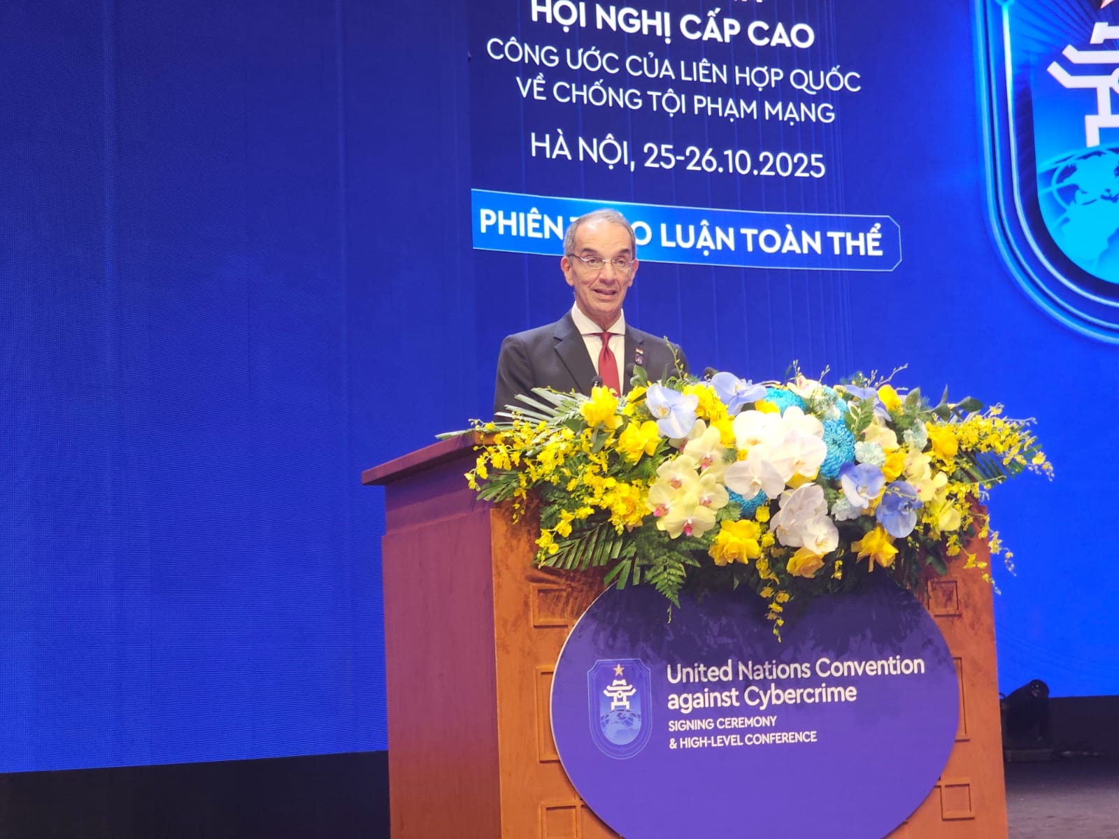 وقعت مصر على اتفاقية الأمم المتحدة لمكافحة الجريمة السيبرانية خلال فعاليات المؤتمر الذى استضافته العاصمة الفيتنامية هانوى؛ حيث قام بالتوقيع الدكتور عمرو طلعت وزير الاتصالات وتكنولوجيا المعلومات، رئيس وفد مصر رفيع المستوى المشارك فى مراسم التوقيع التى شهدها السيد لوونج كونج رئيس جمهورية فيتنام الاشتراكية، والسيد أنطونيو جوتيريش الأمين العام للأمم المتحدة، والدكتورة غادة والى المديرة التنفيذية لمكتب الأمم المتحدة المعنى بالمخدرات والجريمة، والسفير هانى مصطفى سفير جمهورية مصر العربية بجمهورية فيتنام، ورؤساء وفود الدول المشاركة في المؤتمر.