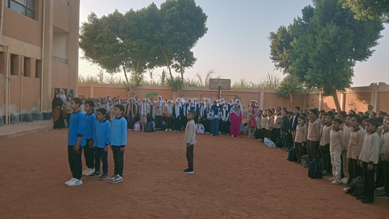 وبدأ وكيل الوزارة جولته بمشاركة طلاب ومعلمي مدرسة "المرحوم وائل محمد بركات للتعليم الأساسي" طابور الصباح وترديد النشيد الوطني، مشيدًا بمستوى الانضباط العام ومستوى الطلاب.