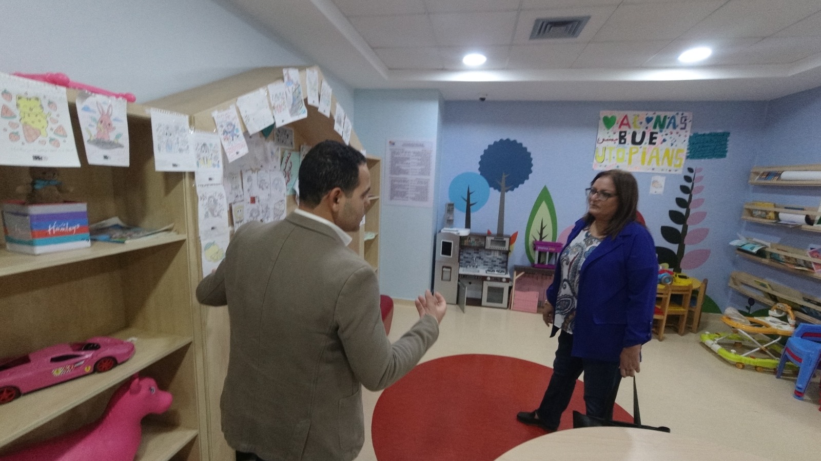 تضمنت زيارة رئيس اتحاد جمعيات الرفق بالحيوان، لمستشفى الناس، جولة تفقدت خلالها غرف الأطفال المرضي، وتعرفت على الخدمات الطبية المقدمة لهم، كما تفقدت خلال جولتها جميع أقسام المستشفى بما في ذلك الصيدلية والمطبخ والمغسلة وغيرها من الأقسام التي تتعلق جميعها بتقديم أفضل خدمة ورعاية للأطفال أثناء رحلة علاجهم داخل المستشفى، إضافة إلى هذا أطلعت على آلية العمل داخل أقسام الأطفال والقلب والقسطرة والجهاز الهضمي والحروق.