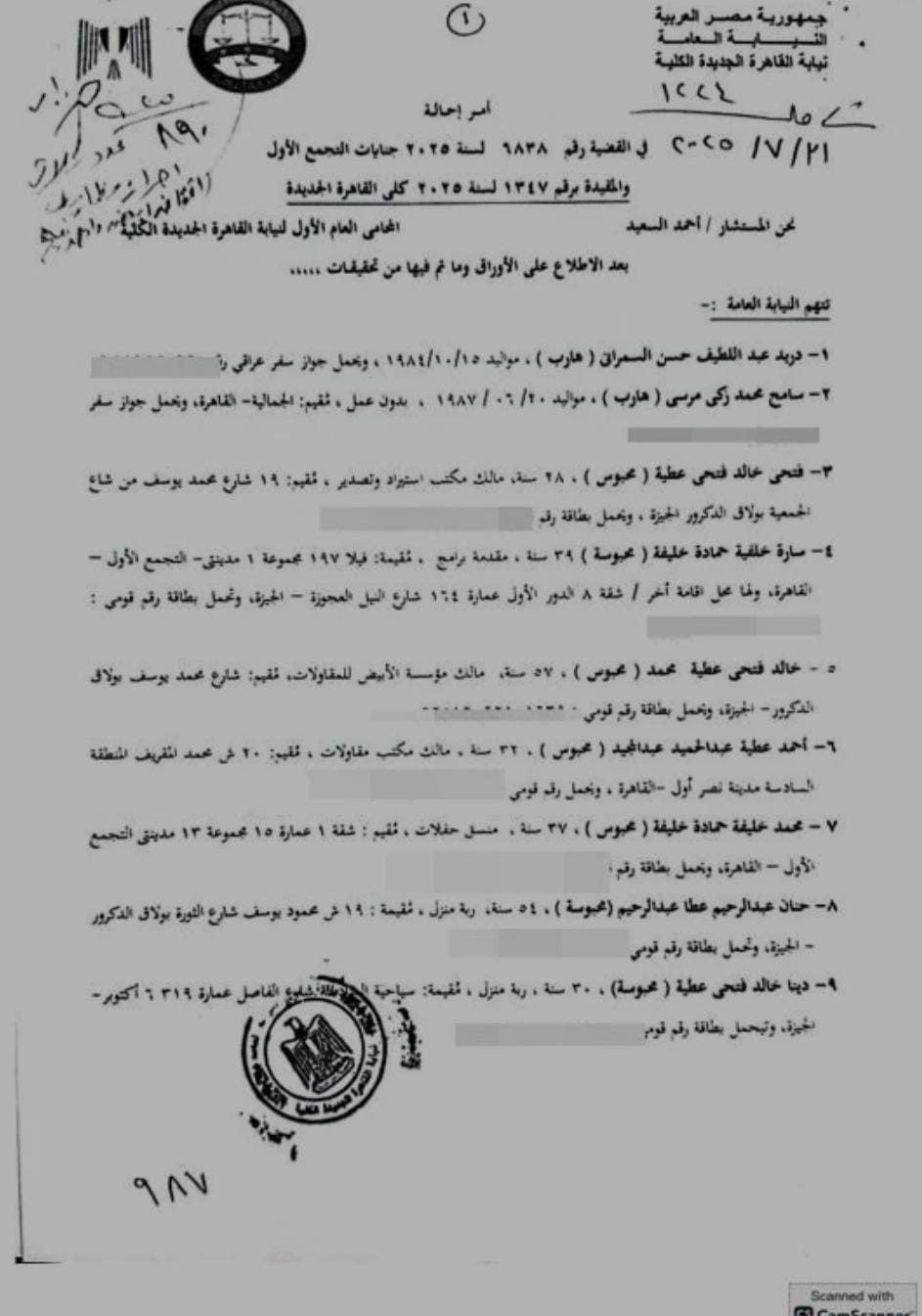 وجاء في أمر الإحالة أن النيابة العامة تتهم كلًا من:
