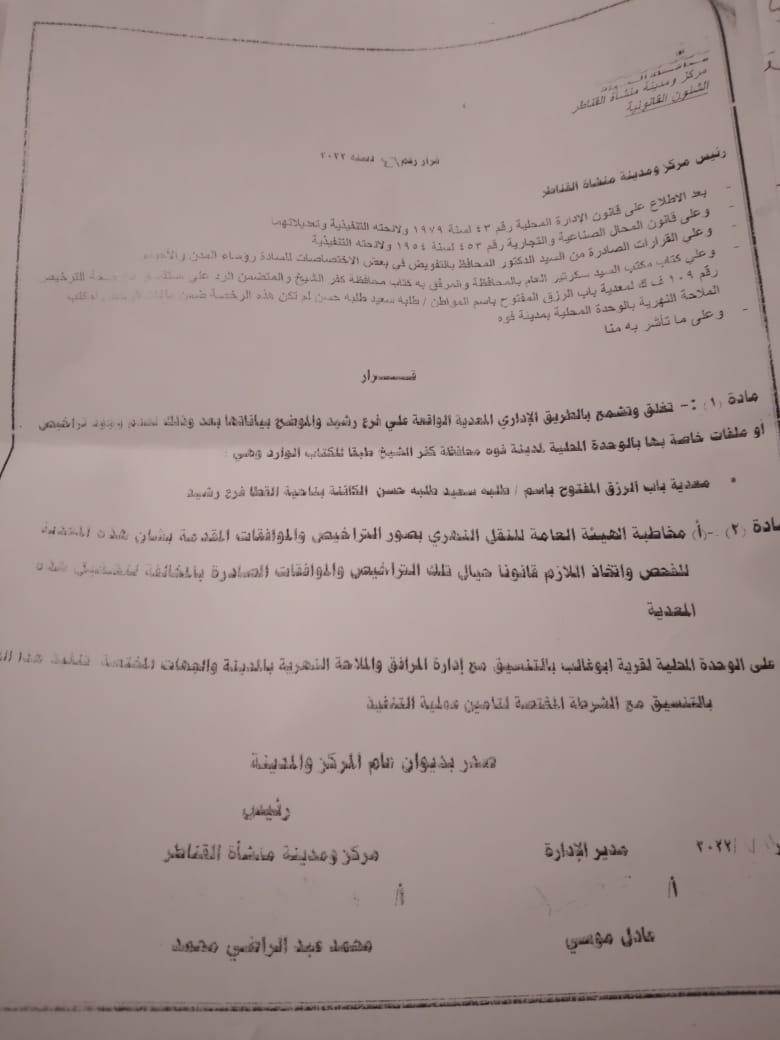 وصدر قرار غلق وتشميع من مجلس مدينة منشأة القناطر بالقرار رقم ٢٤٧ لسنة ٢٠١٩ ولم يتم تنفيذه.