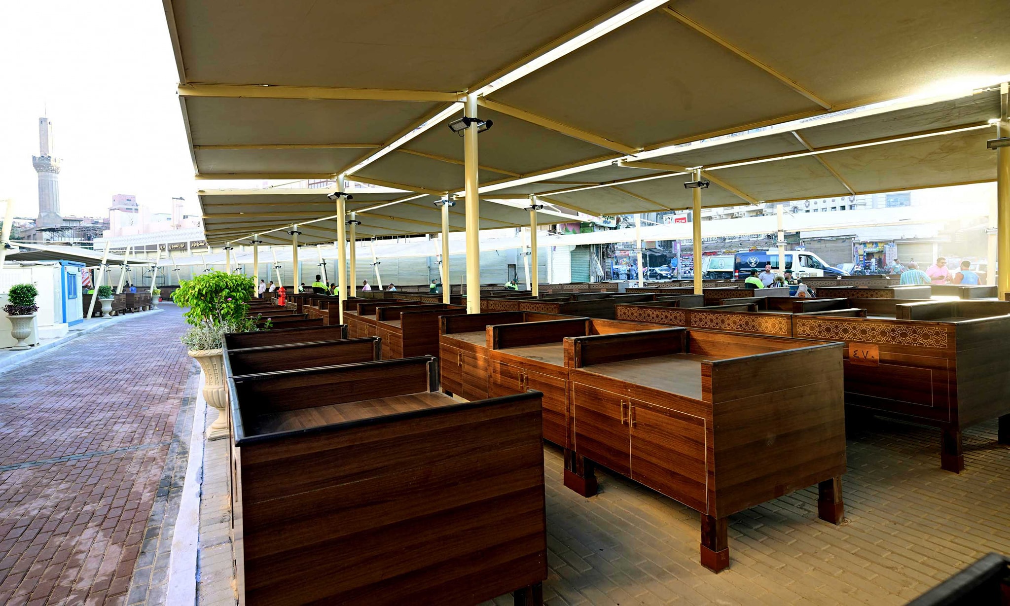 كما تم الانتهاء من تنفيذ شبكات المرافق بنسبة ١٠٠٪، وتشمل الصرف الصحي، والمياه، والكهرباء، والاتصالات، إلى جانب تنفيذ أعمال التطوير بنسبة ١٠٠٪، والتي تضمنت رصف الأرضيات بالإنترلوك، وتركيب مظلات مقاومة للحريق تسمح بالإضاءة الطبيعية، وإضاءة حديثة تبرز الطابع الجمالي للمكان، وتصميم واجهات ويافطات المحلات بخامات عالية الجودة مثل: الكلادينج والسيمنت بورد، ودهان الأبواب، وتوريد الطاولات المخصصة للباعة، وتركيب منظومة متكاملة لكاميرات المراقبة؛ لتعزيز الأمن والسلامة داخل السوق.