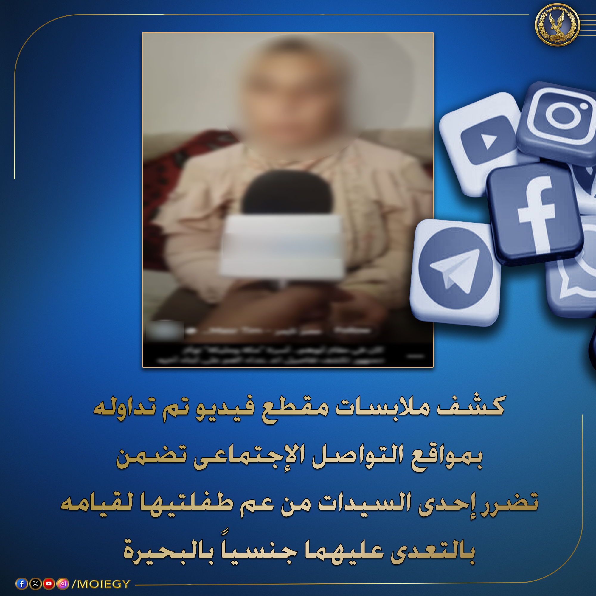 فى إطار كشف ملابسات مقطع فيديو تم تداوله بمواقع التواصل الإجتماعى تضمن تضرر إحدى السيدات من عم طفلتيها لقيامه بالتعدى عليهما جنسياً بالبحيرة.