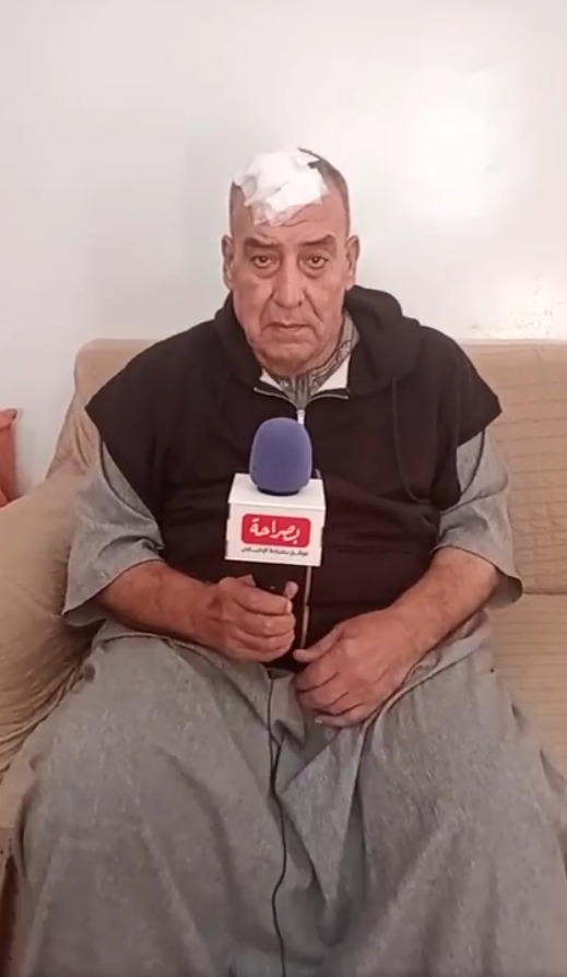قال العم بكر في تصريحات خاصة لموقع بصراحة: “بعد الصلاة في المسجد، لقيته جاي عليّ وبدأ يشتم، وفجأة لقيت العصاية على دماغي، ومحستش بنفسي. دماغي وهدومي كلها كانت دم، والواقعة كلها كانت متصورة بالكاميرا”.