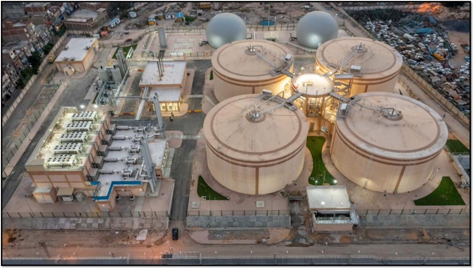 وأضاف أن المشروع يهدف إلى رفع كفاءة المحطة وتحسين أدائها البيئي عبر تنفيذ هواضم للحمأة تعمل على تحويلها إلى غاز حيوي (بيوجاز) يُستخدم في توليد طاقة كهربائية تغطي نحو 60% من استهلاك المحطة، إضافةً إلى، الحد من التلوث وتقليل الروائح الكريهة بنسبة 30% من حجم الحمأة الناتجة، وتجفيف الحمأة المهضومة لإعادة استخدامها في أغراض متعددة، وتحسين الوضع البيئي والصحي في المناطق المحيطة بالمحطة.