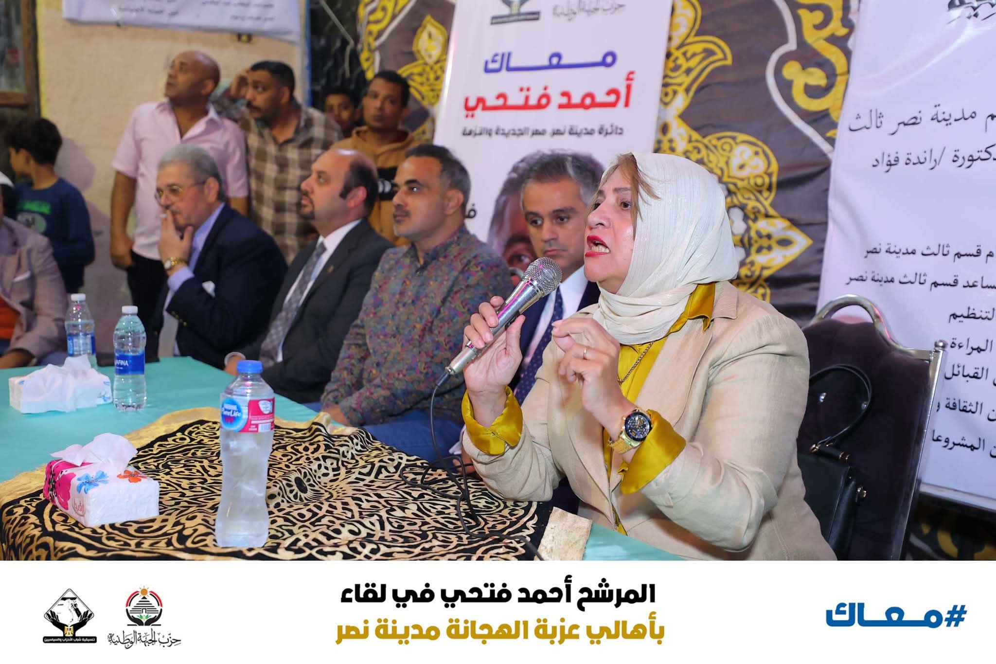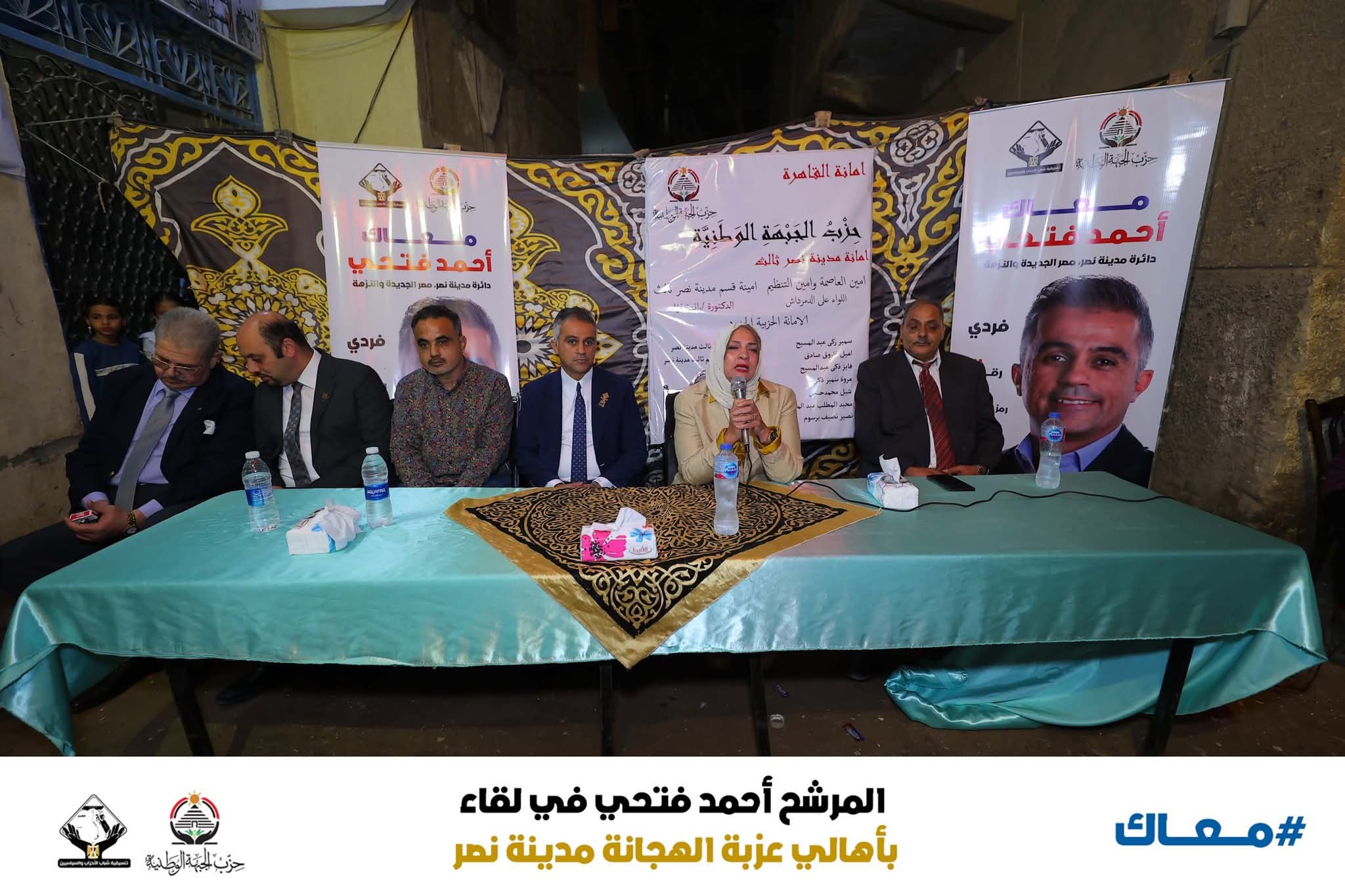استمرارًا للجهود الميدانية التي يقوم بها المرشح أحمد فتحي للتواصل مع أهالي الدائرة استضافت أمانة قسم ثالث مدينة نصر بحزب الجبهة الوطنية لقاءً جمع المرشح بأهالي عزبة الهجانة برئاسة الدكتورة راندة فؤاد أمينة الأمانة، وبحضور عدد من كوادر الحزب.