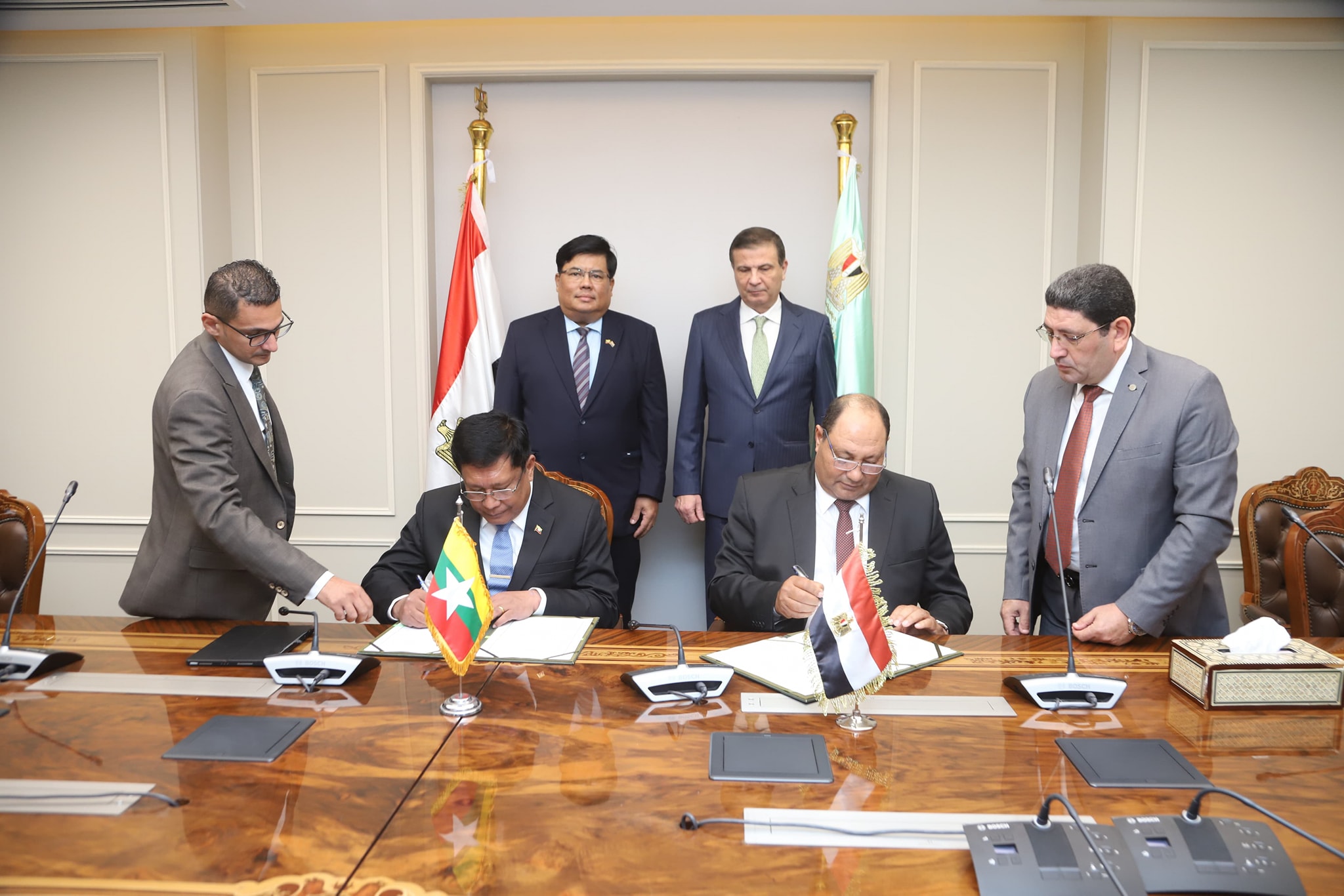 شهد علاء فاروق، وزير الزراعة واستصلاح الأراضي، توقيع مذكرة تفاهم مشتركة بين وزارة الزراعة واستصلاح الأراضي بجمهورية مصر العربية ووزارة الزراعة والثروة الحيوانية والري بجمهورية اتحاد ميانمار، بهدف تعزيز التعاون المشترك في المجال الزراعي والأنشطة المرتبطة به.