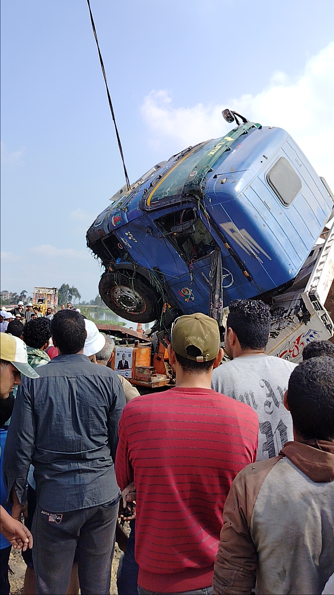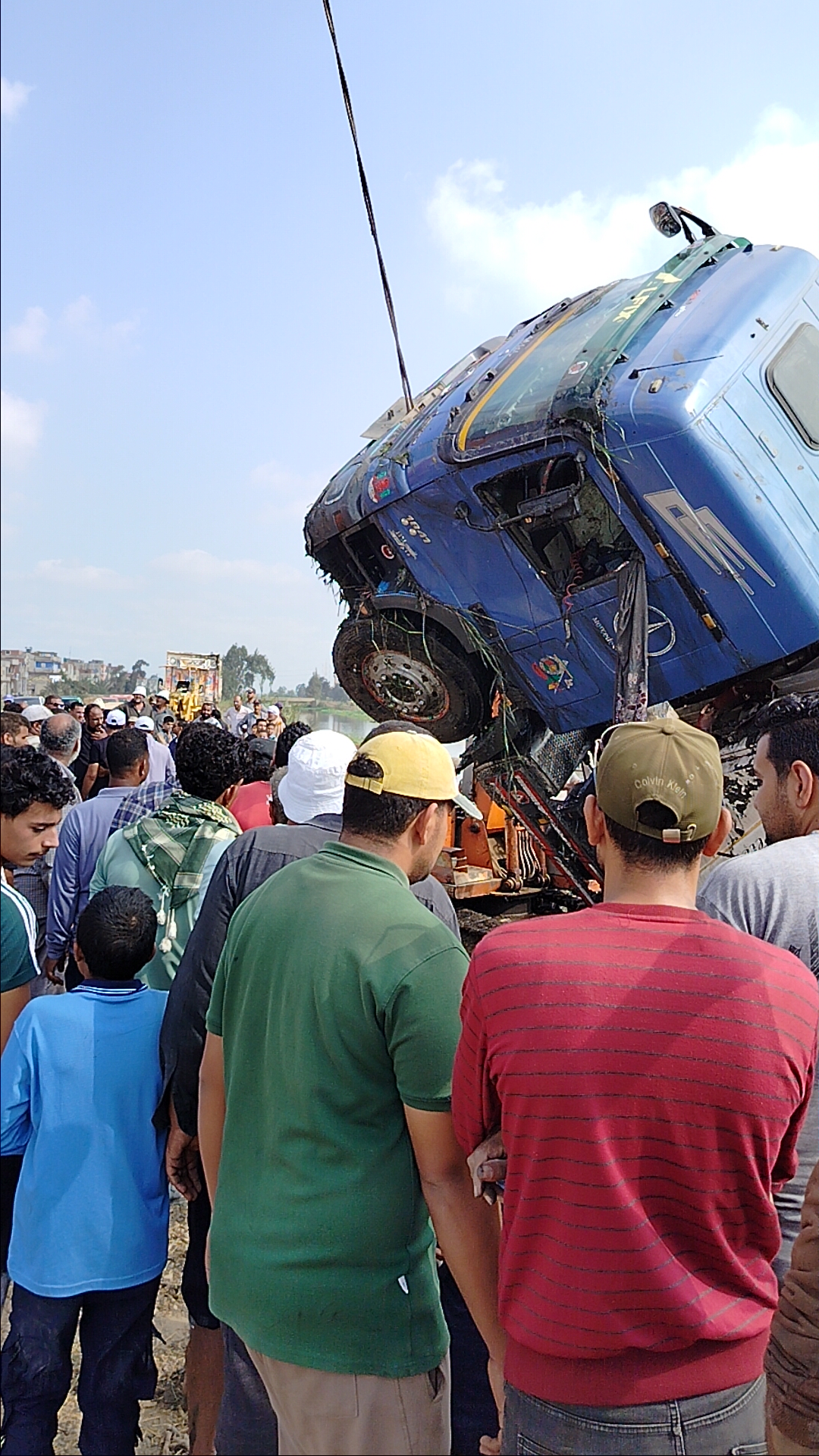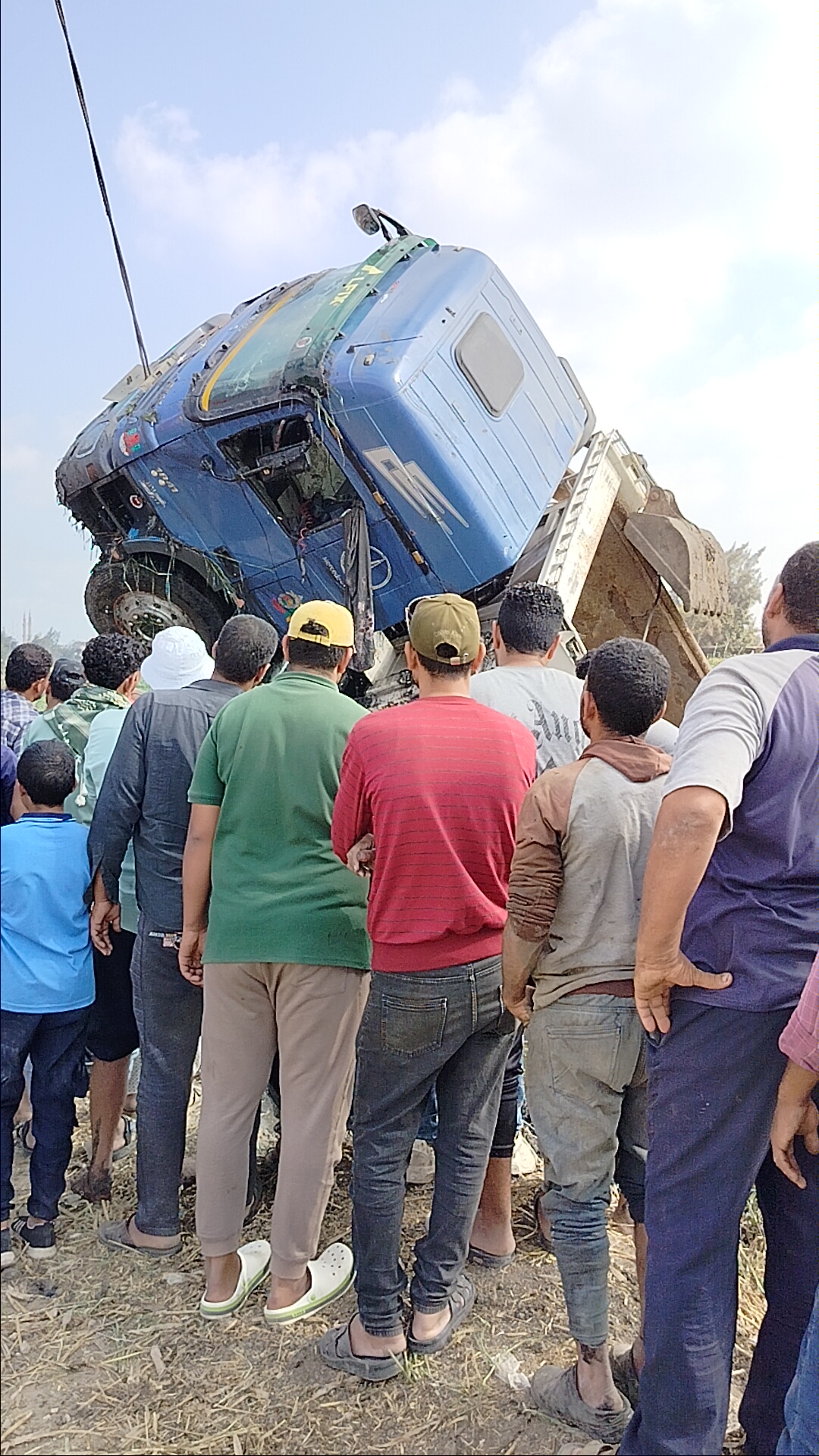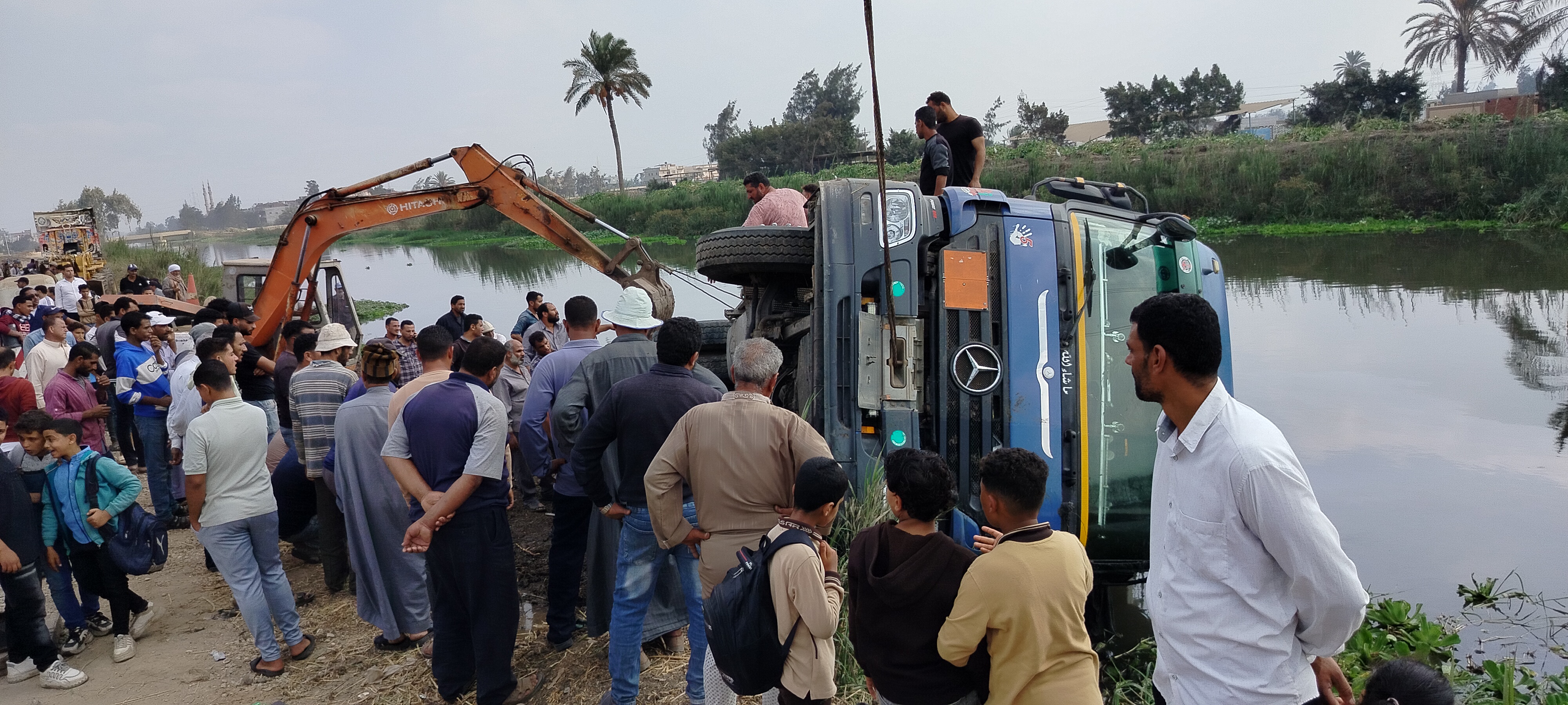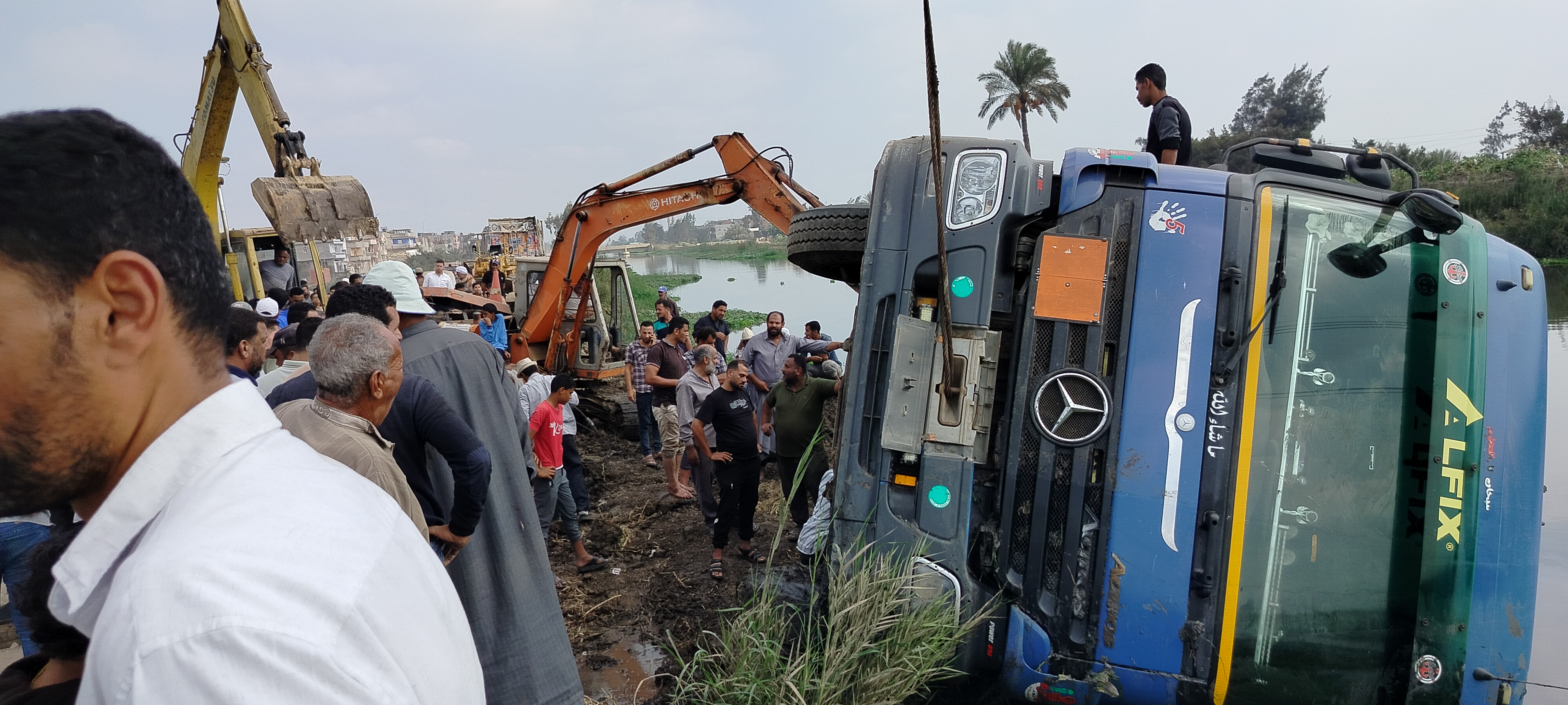 انقلاب سيارة نقل ثقيل داخل مصرف عموم البحيرة في دكرنس بالدقهلية