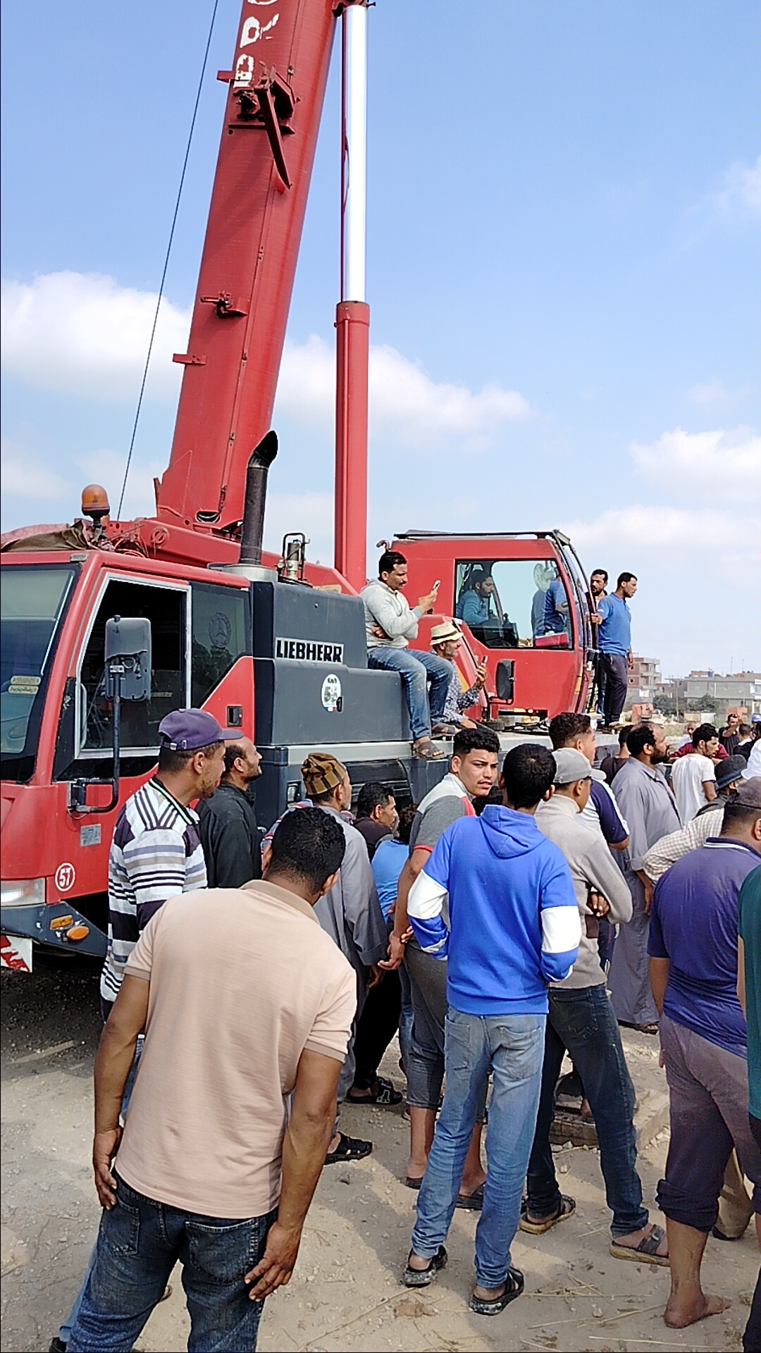 وتجمع عدد من الأهالي حول موقع الحادث في محاولة لانتشال السيارة باستخدام اللوادر، إلا أن محاولاتهم باءت بالفشل، فتم الاستعانة برافعة معدات ثقيلة لمعاونة اللوادر في استخراج السيارة من داخل المصرف.