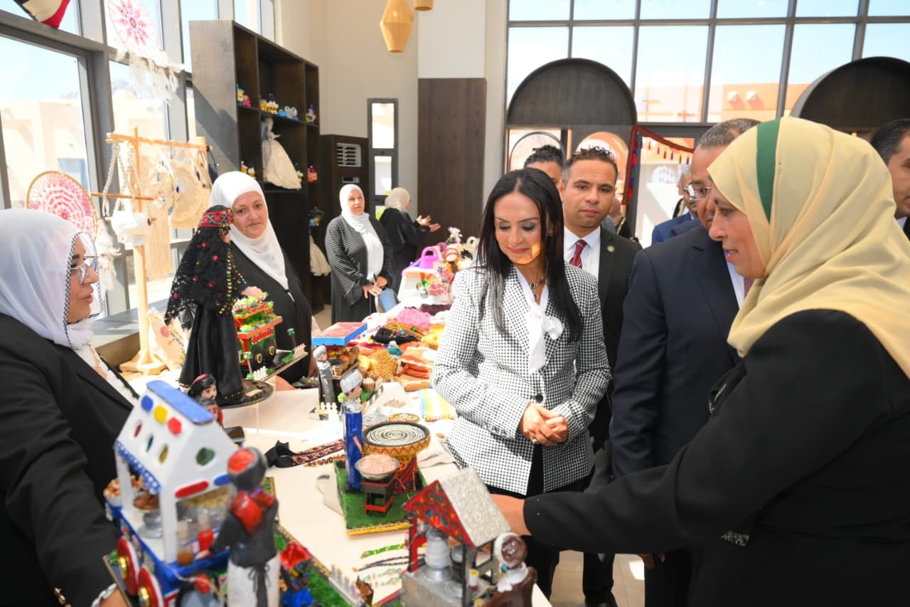 وحرصت الدكتورة مايا مرسي واللواء دكتور خالد مبارك على تفقد أروقة المعرض، والذي يضم مختلف المنتجات السيناوية التراثية، فضلا عن المنتجات التراثية واليدوية الأخرى من الأرابيسك ومشغولات النحاس والزجاج، بجانب ديكورات المنزل والأزياء والإكسسوارات.