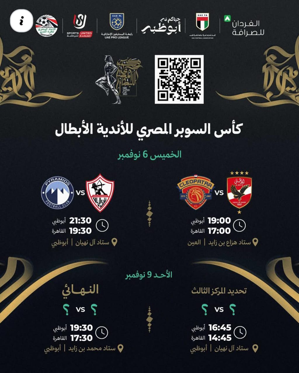 بتنظيم رابطة المحترفين الإماراتية بالتعاون مع الاتحادين المصري والإماراتي لكرة القدم ودائرة الثقافة والسياحة بأبوظبي والشركة المتحدة للرياضة ، وذلك خلال الفترة من 6 لغاية 9 نوفمبر 2025.